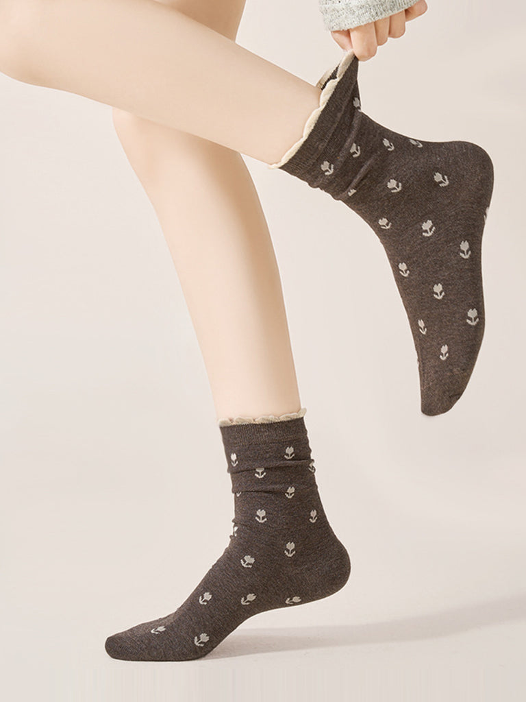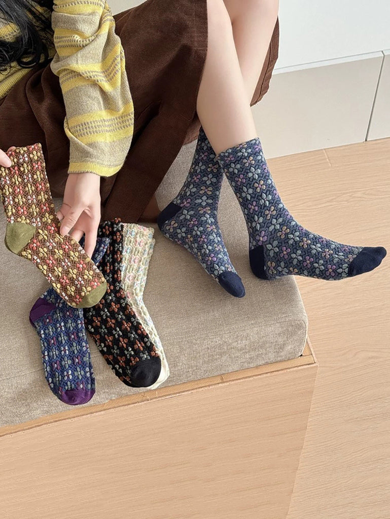 5 Pairs Women Vintage Autumn Jacquard Cotton Socks