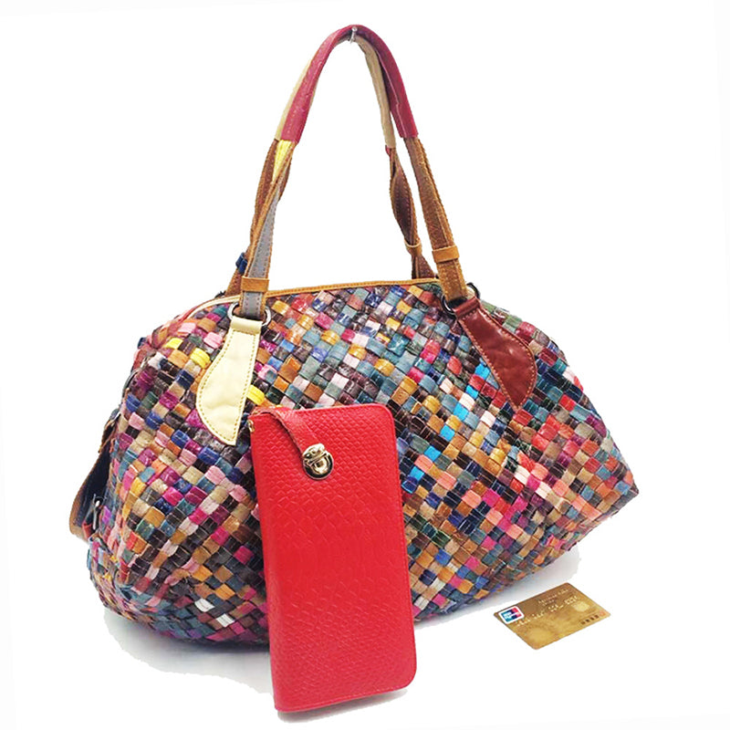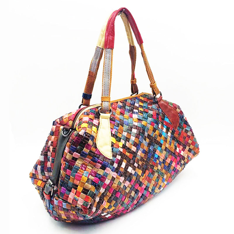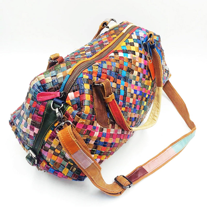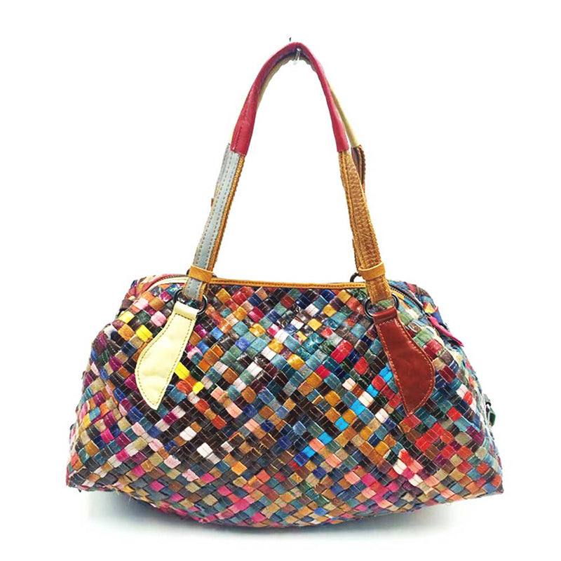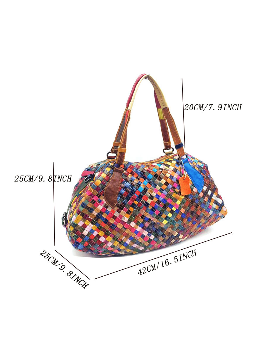 Questa borsa a tracolla da donna colorata in pelle è perfetta per feste o vacanze. Ha due manici per un facile trasporto e un motivo a quadri per un look elegante. La borsa è realizzata in pelle e ha una chiusura con cerniera per un facile accesso.