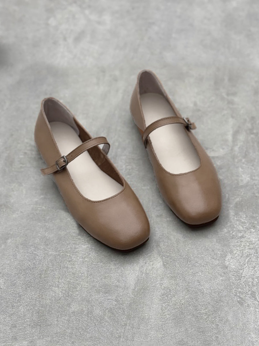 Scarpe Mary Jane eleganti da donna in pelle tinta unita con tacco basso