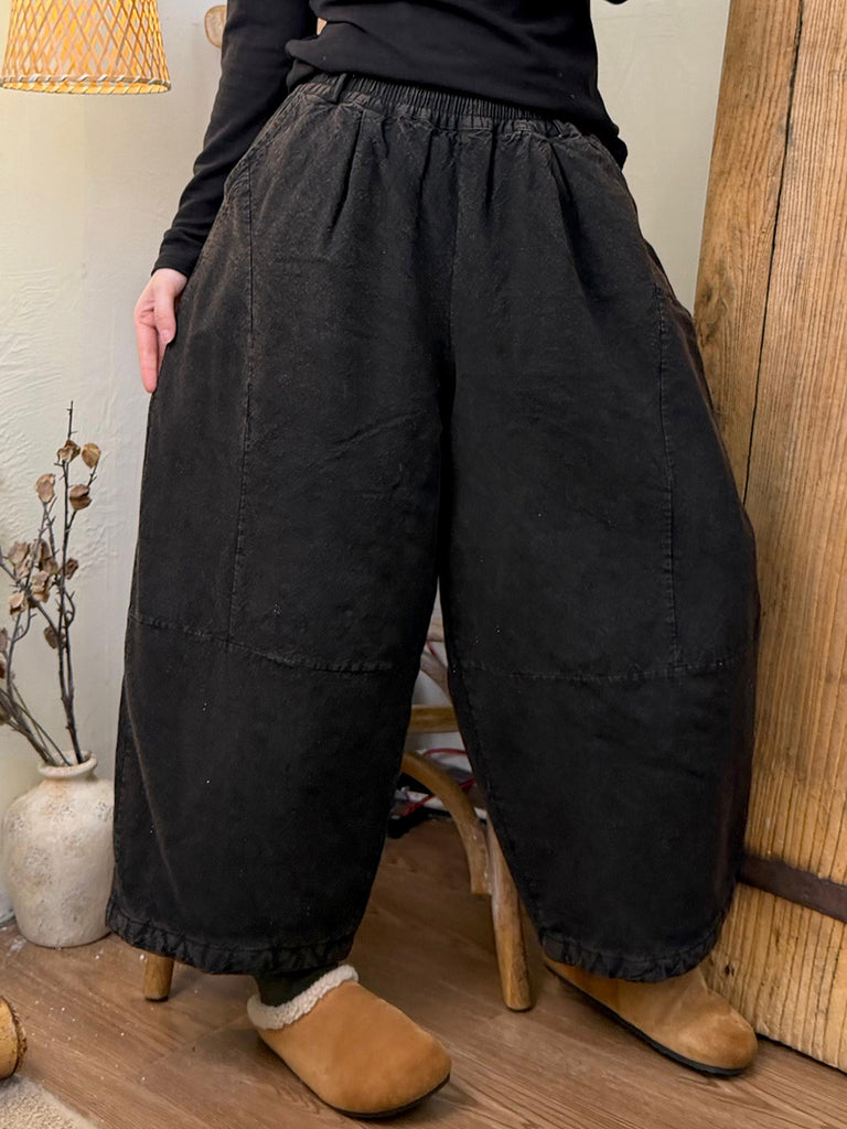 Women Winter Casual Pure Color Fleece-lined Harem Pants