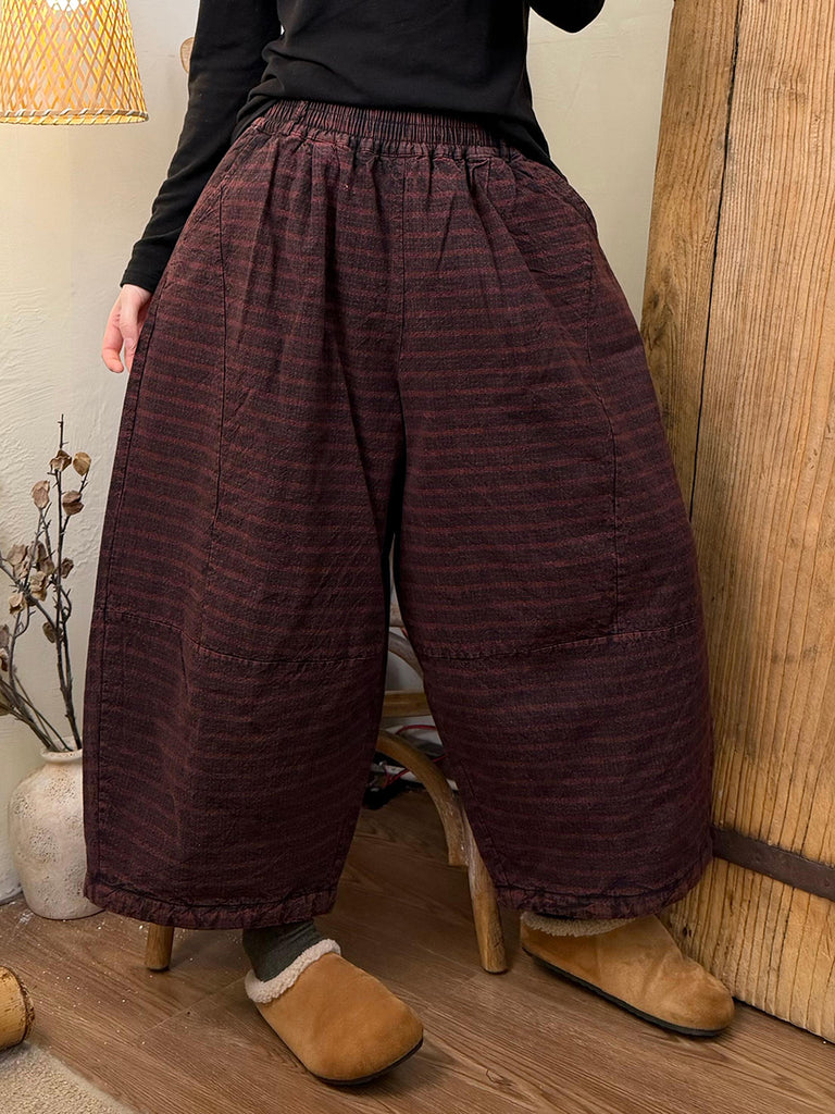 Women Winter Retro Plaid Stripe Straight Padded Pants