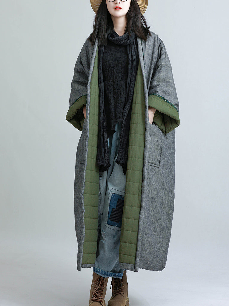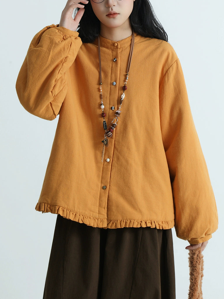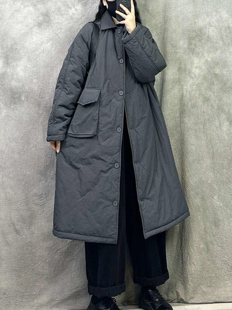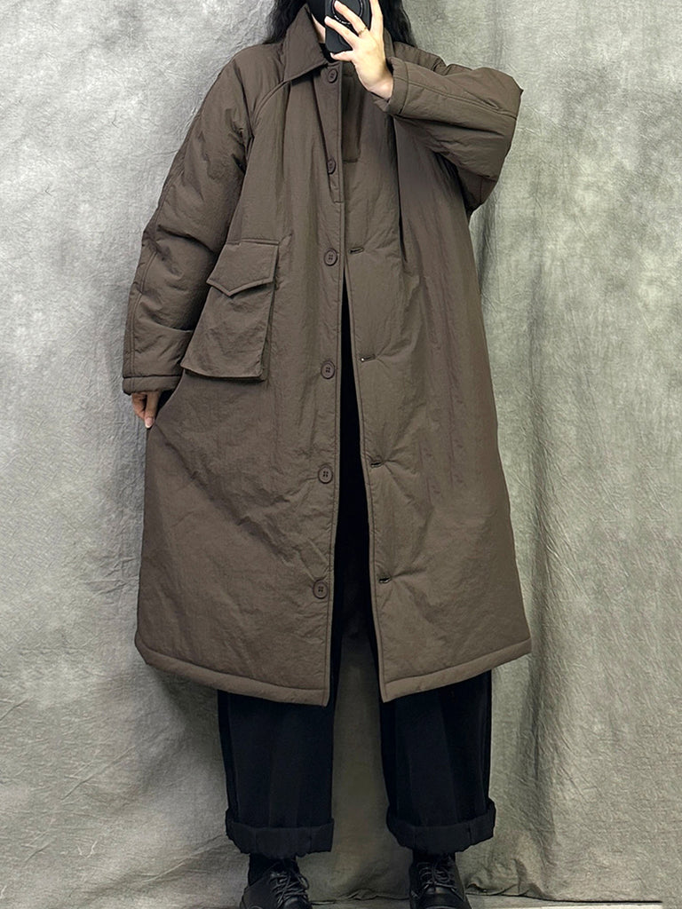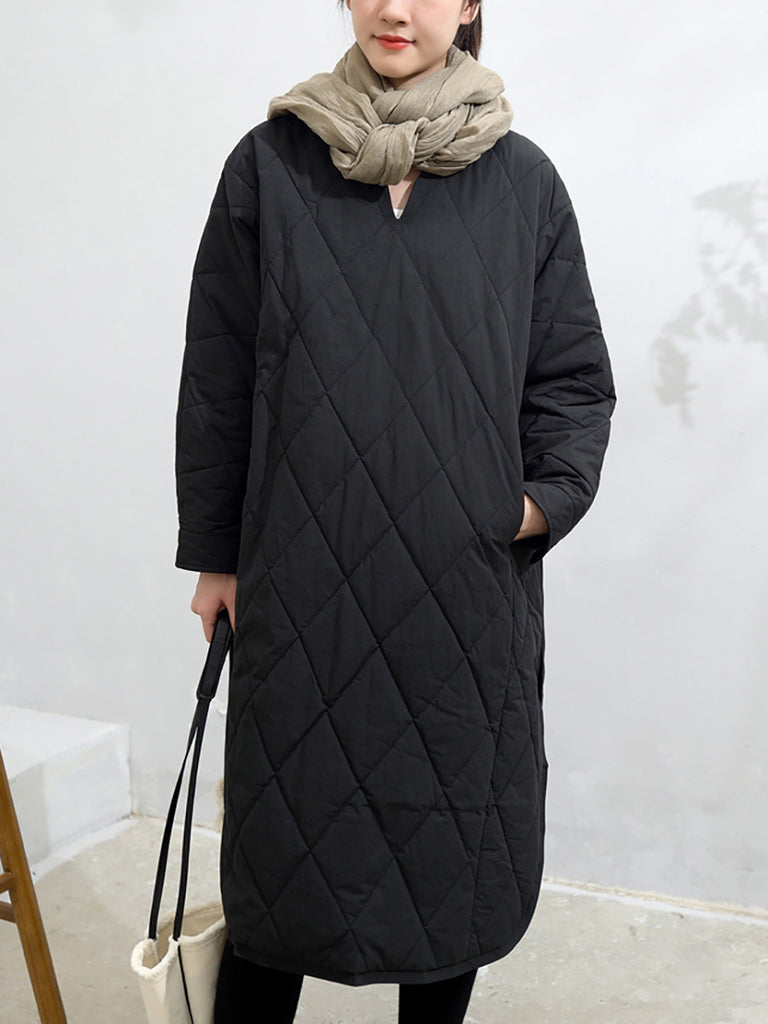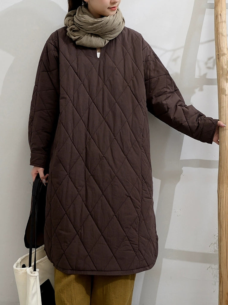 Women Winter Retro Pure Color V-Neck Padded Coat