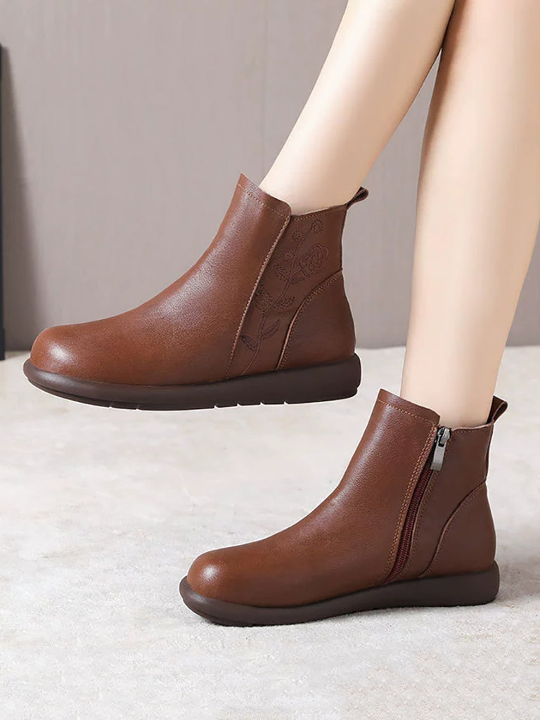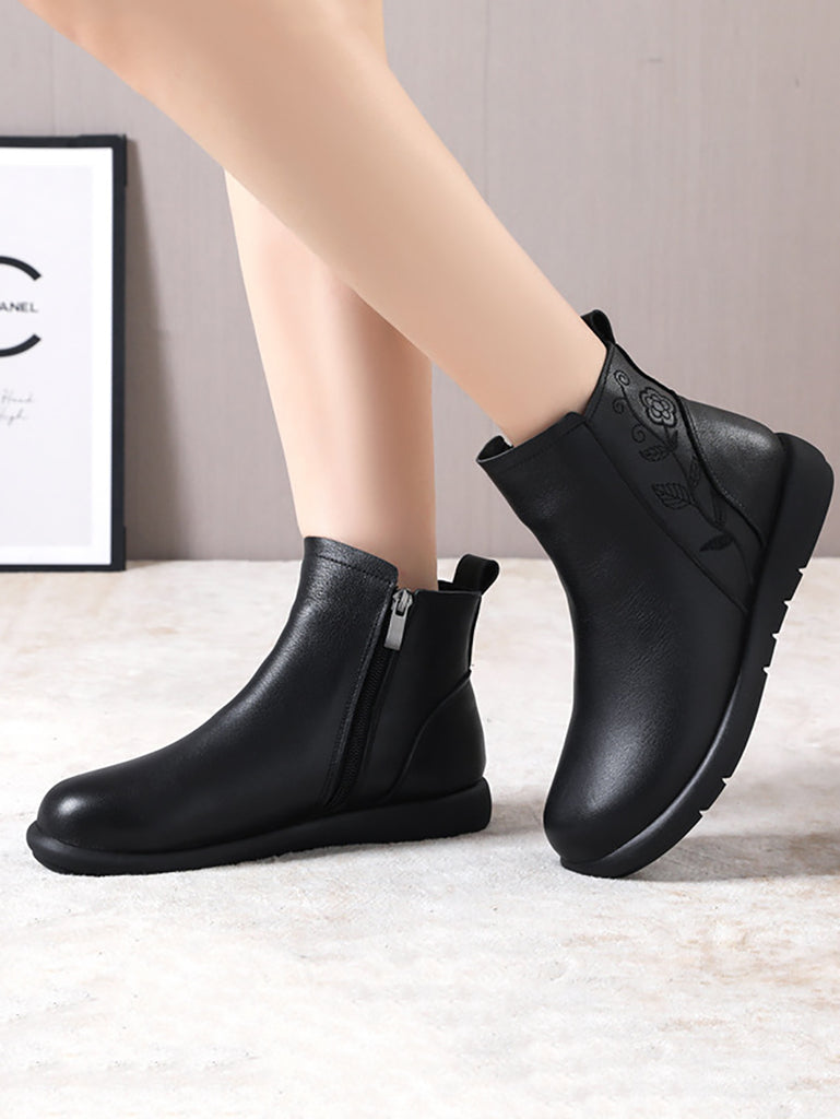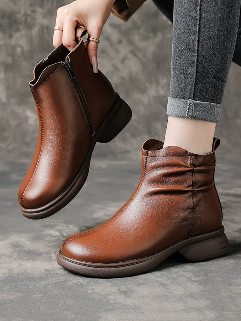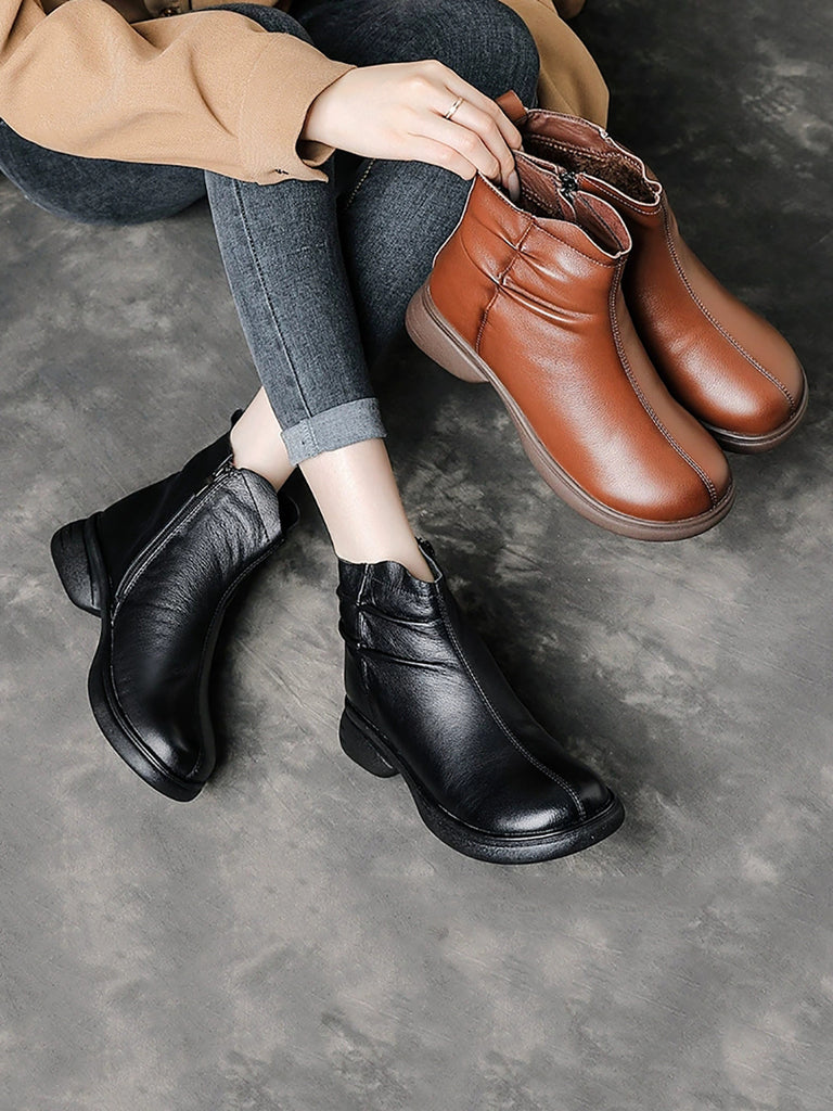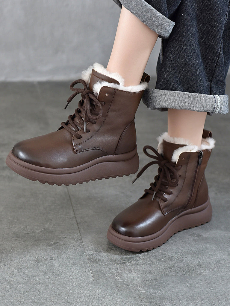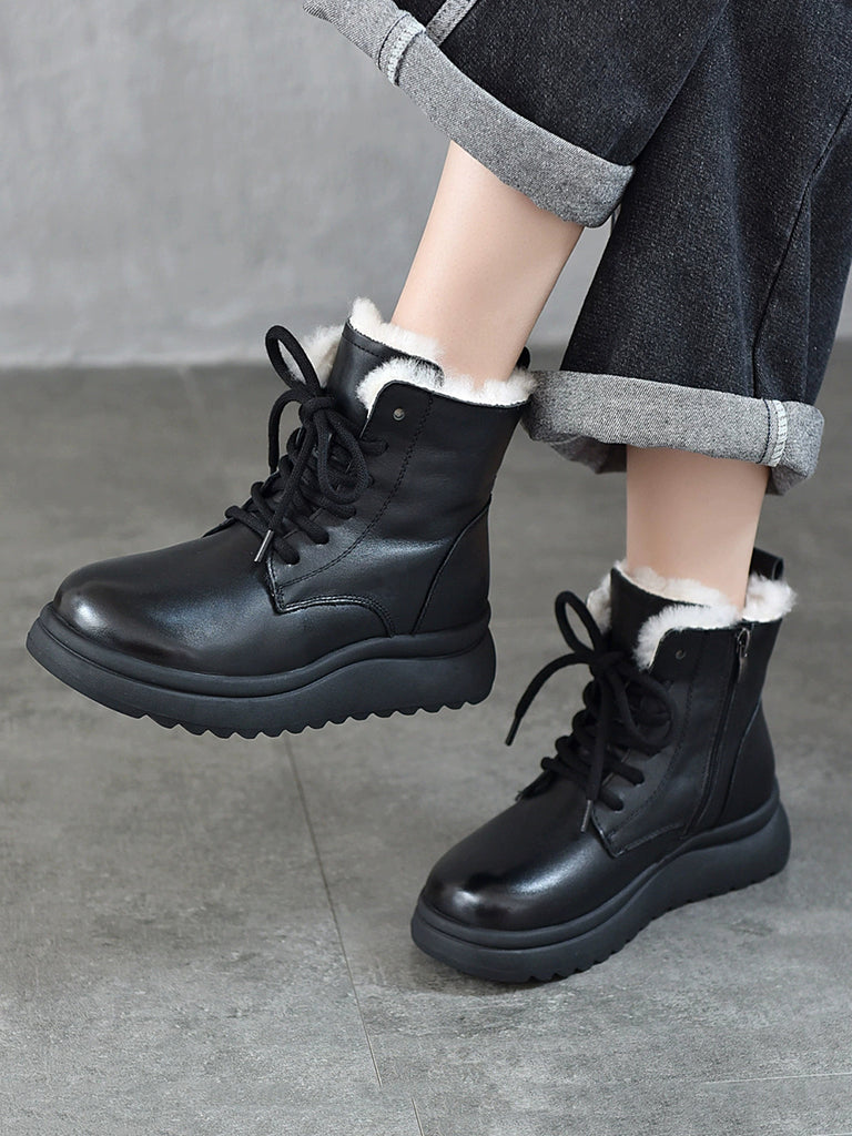 Women Winter Genuine Leather Fleece-lined Ankle Boots