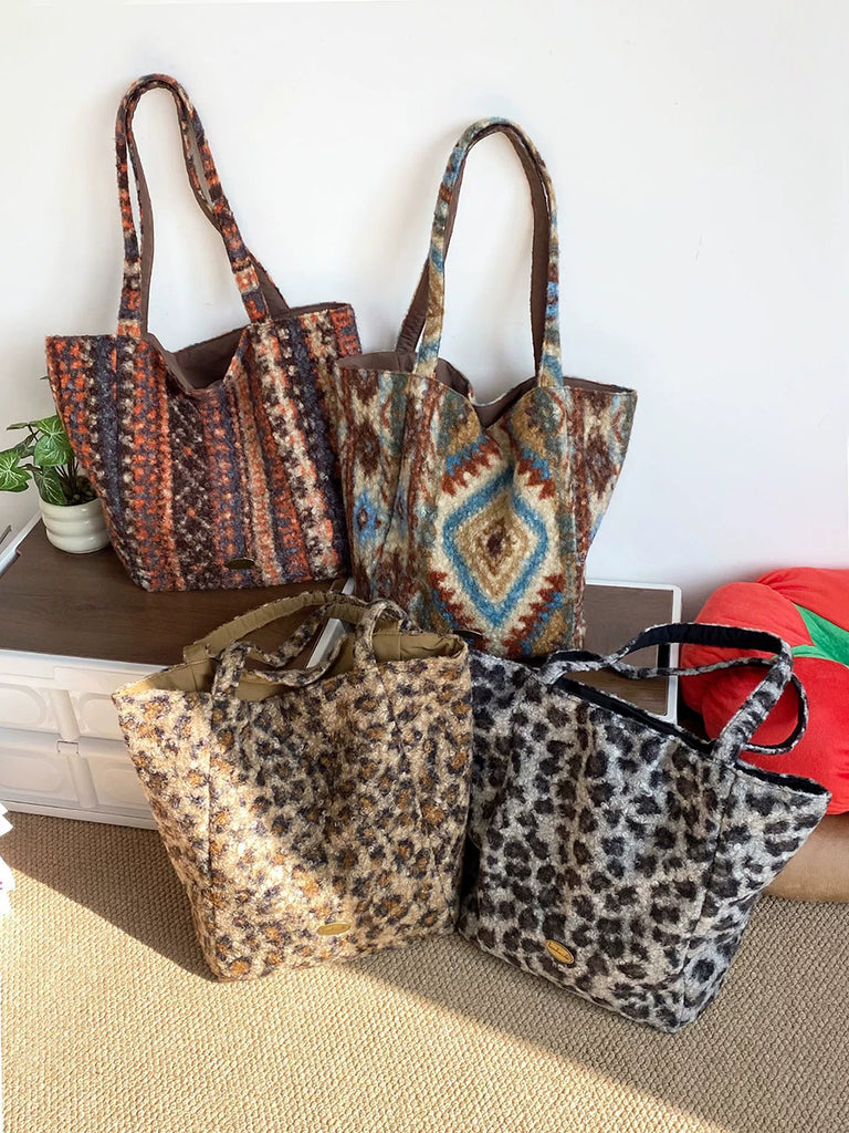 Women Winter Artsy Leopard Print Fleece Shoulder Bag