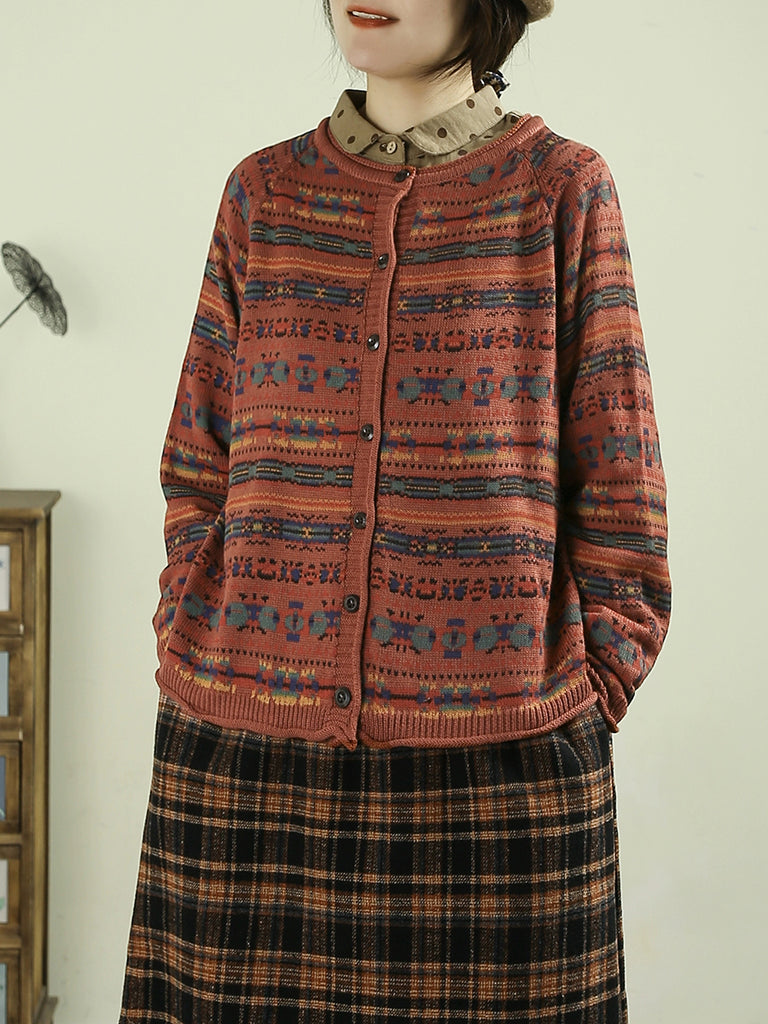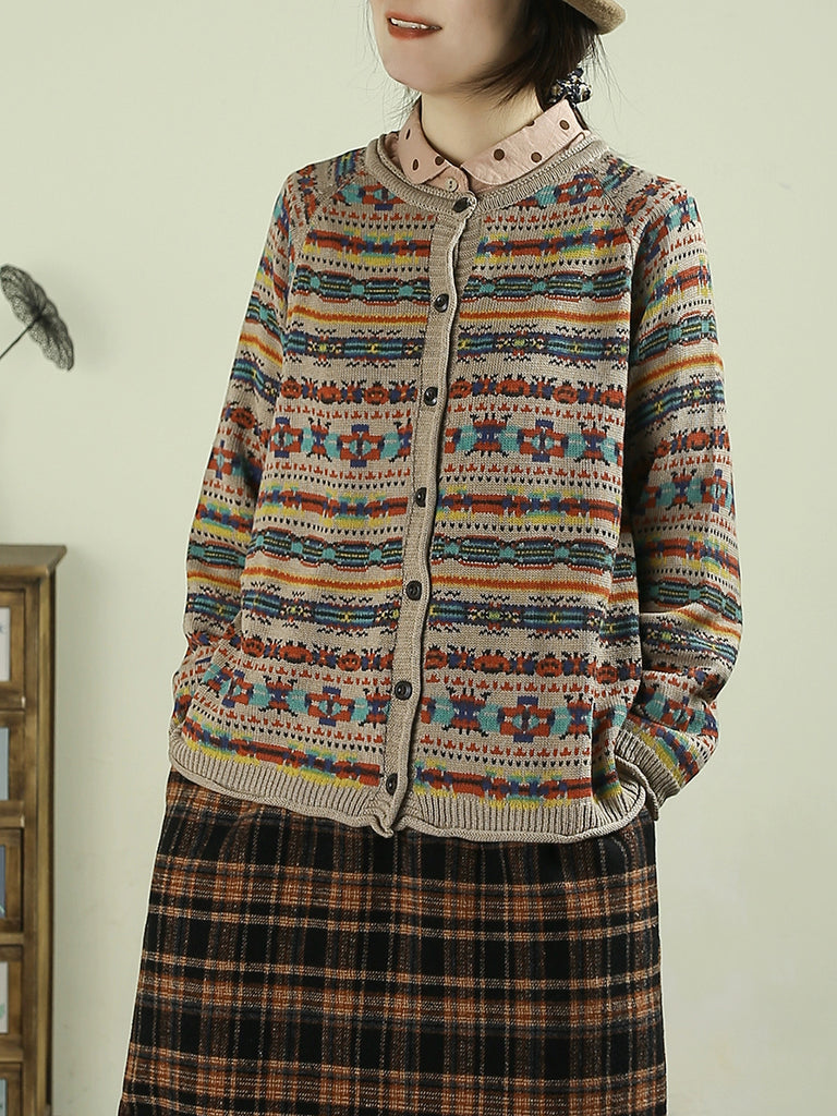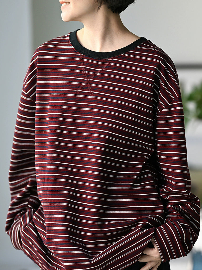 Women Autumn Artsy Stripe Knitted O-Neck Sweater