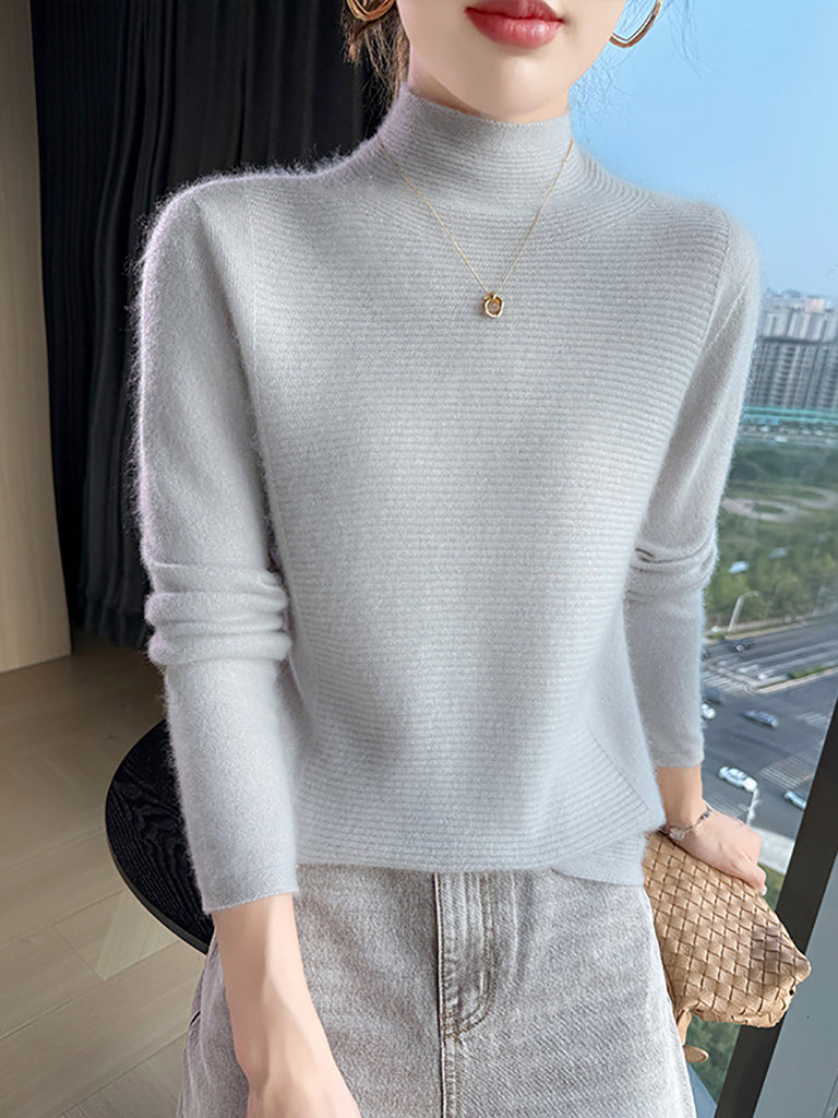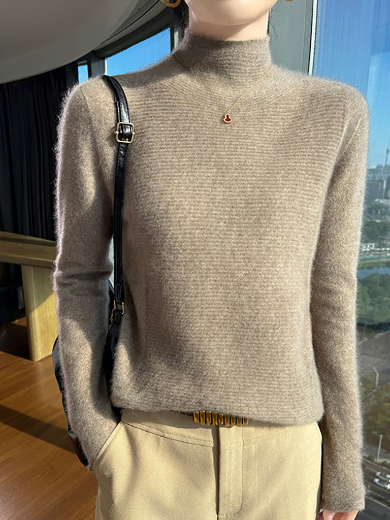 Women Autumn Artsy Pure Color Half-Turtleneck Sweater