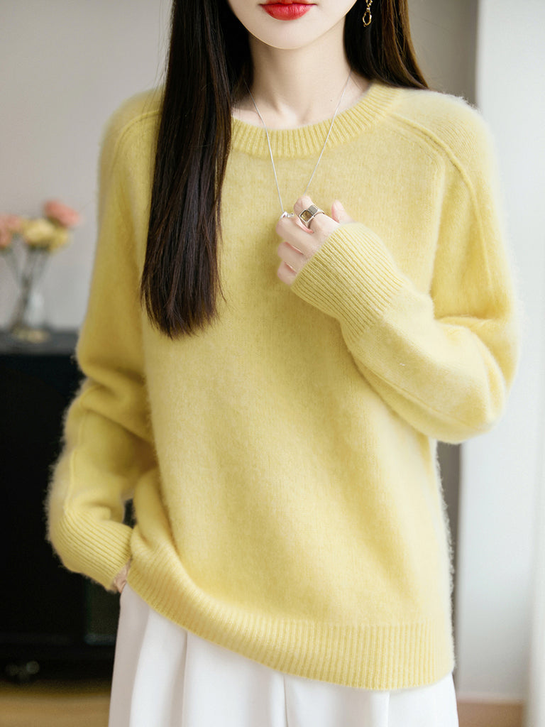 Women Autumn Artsy Pure Color O-Neck Sweater