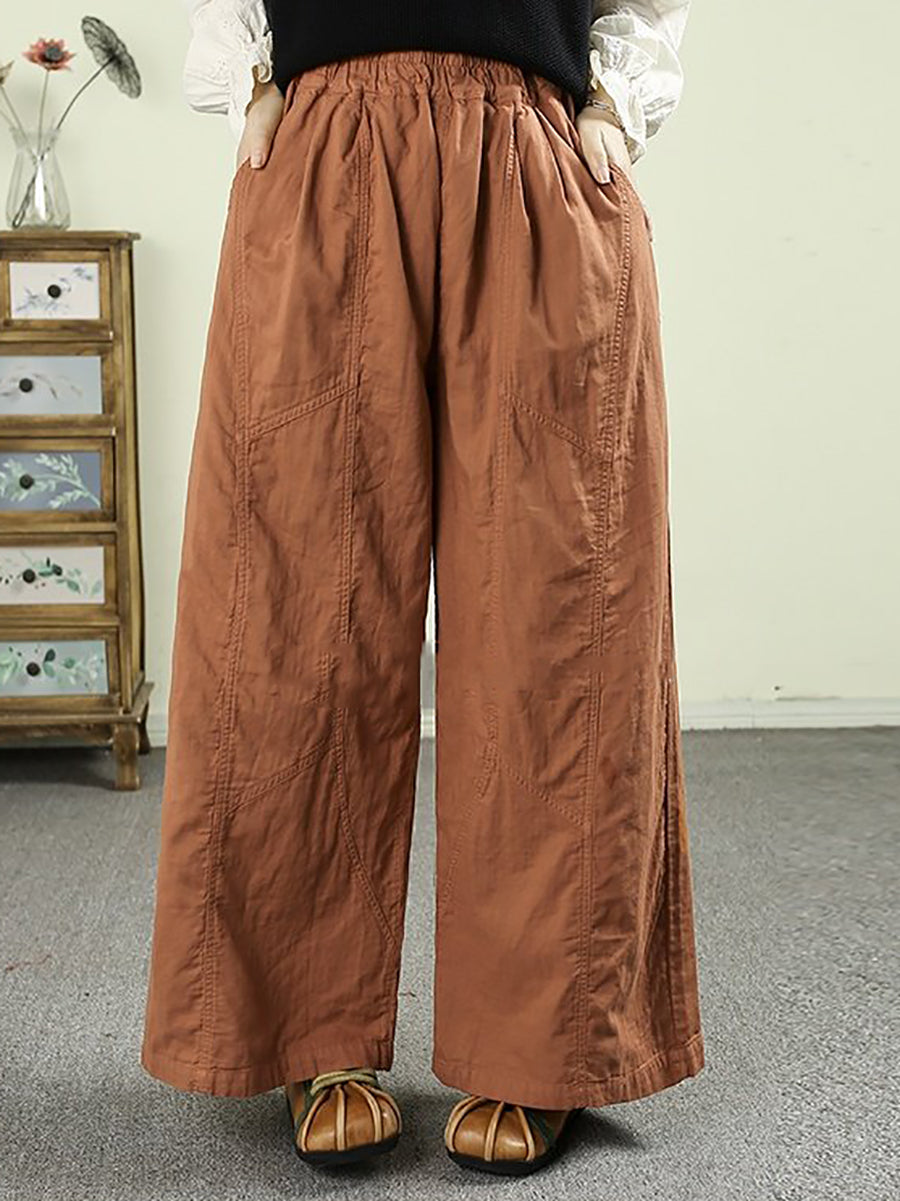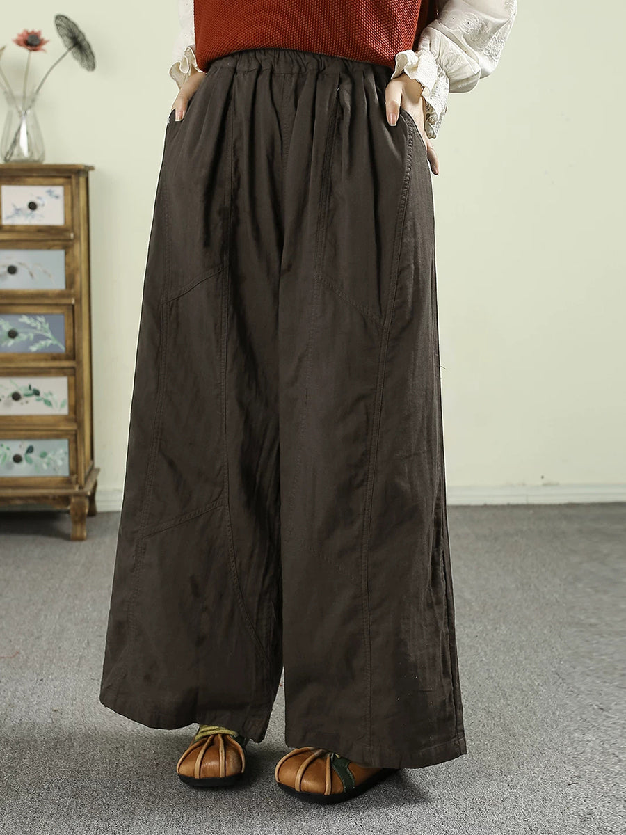 Women Spring Retro 100%Cotton Wide-leg Pants