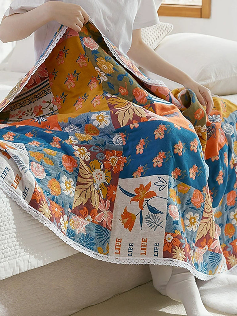 100%Cotton Flower Adult Lace Spliced Bath Towel