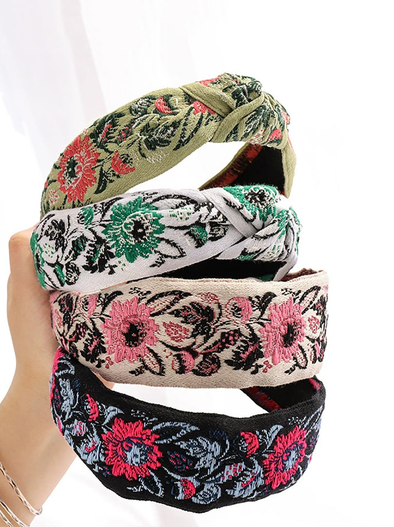 4 Pieces Women Ethnic Embroidery Knot Hair Brand