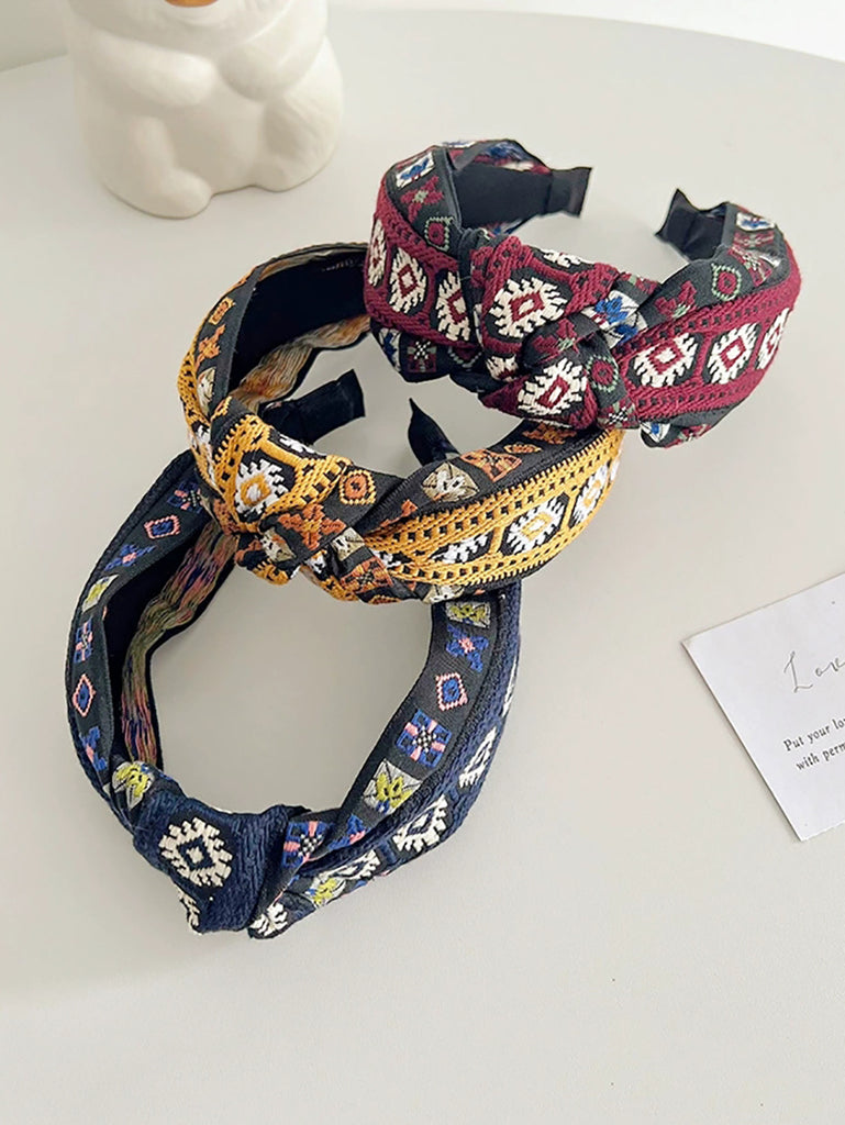 4 Pieces Winter Artsy Flower Knitted Wide Hairband