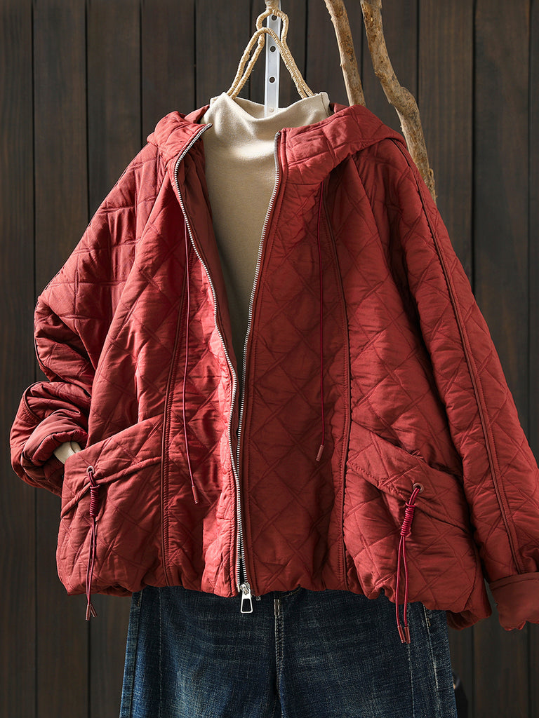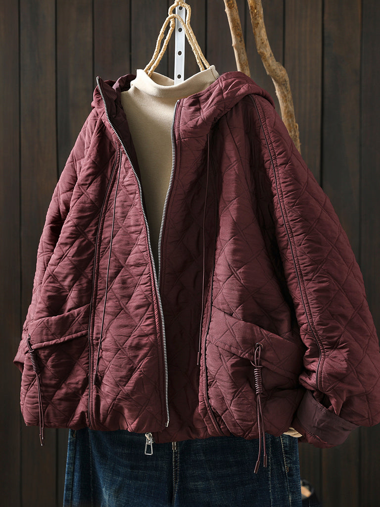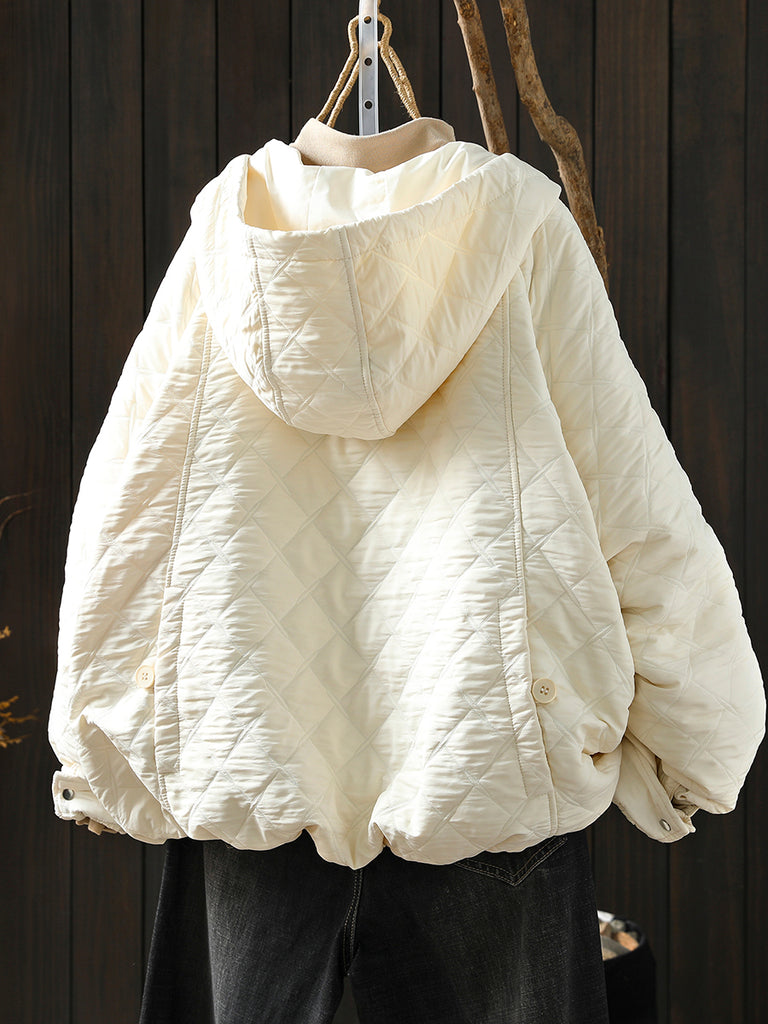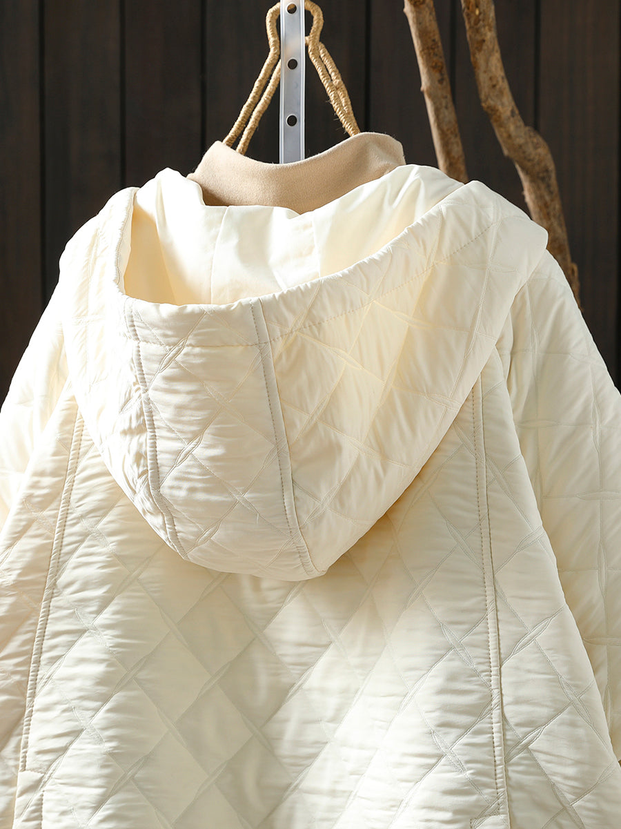 Women Winter Retro Pure Color Padded Hooded Coat