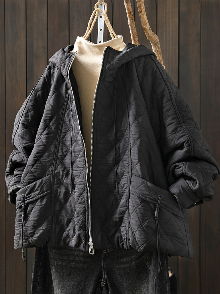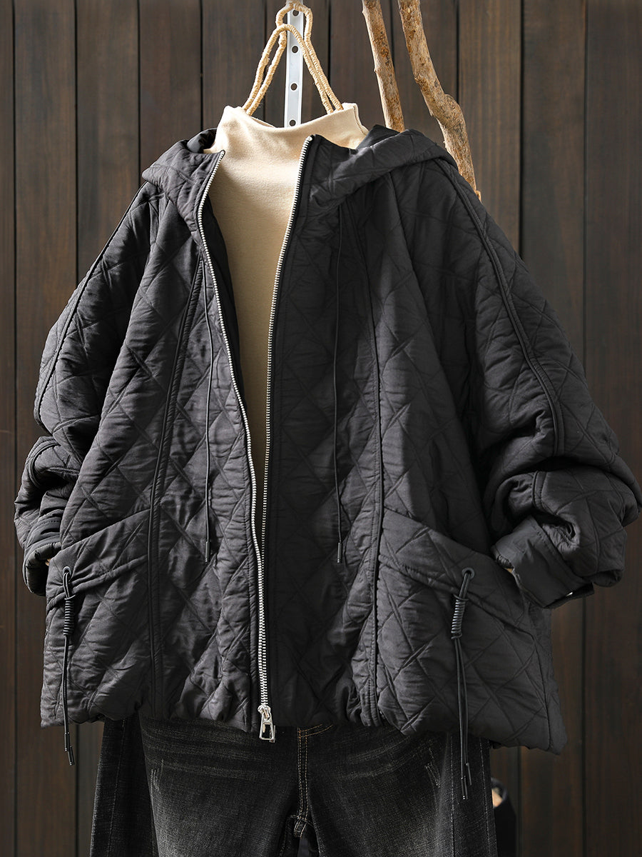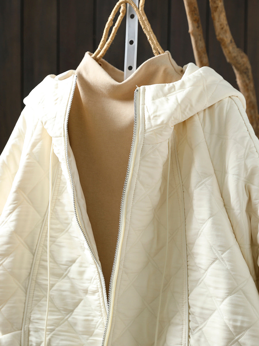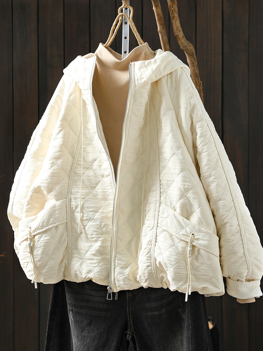 Women Winter Retro Pure Color Padded Hooded Coat