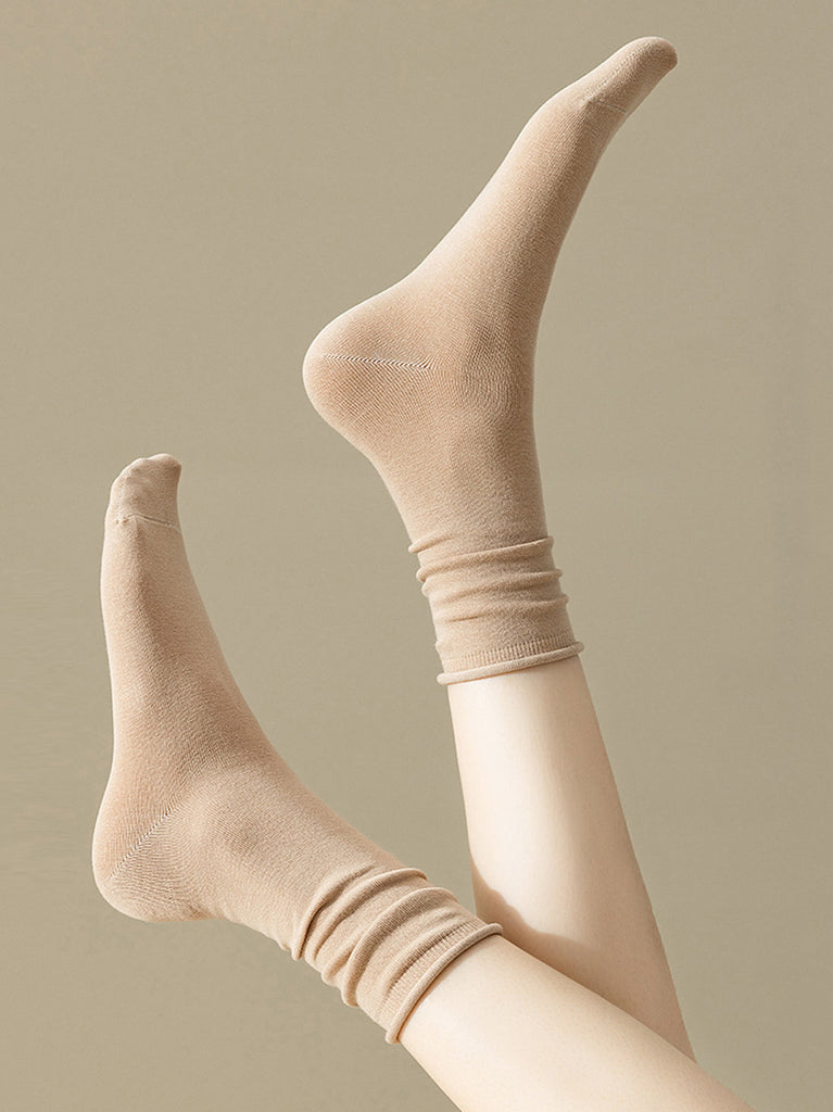 5 Pairs Women Casual Solid Cotton Mid-leg Socks