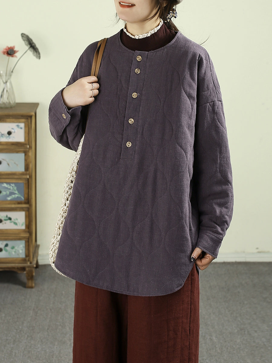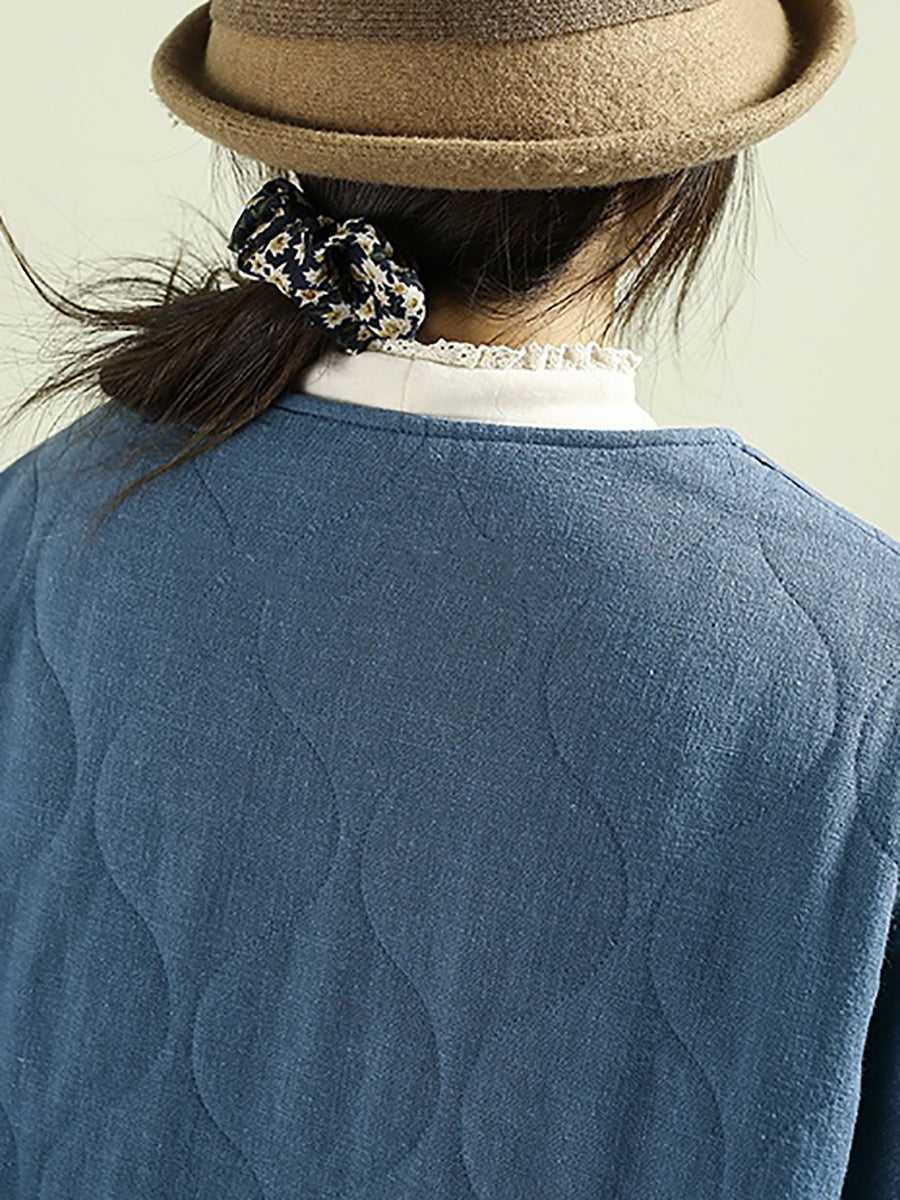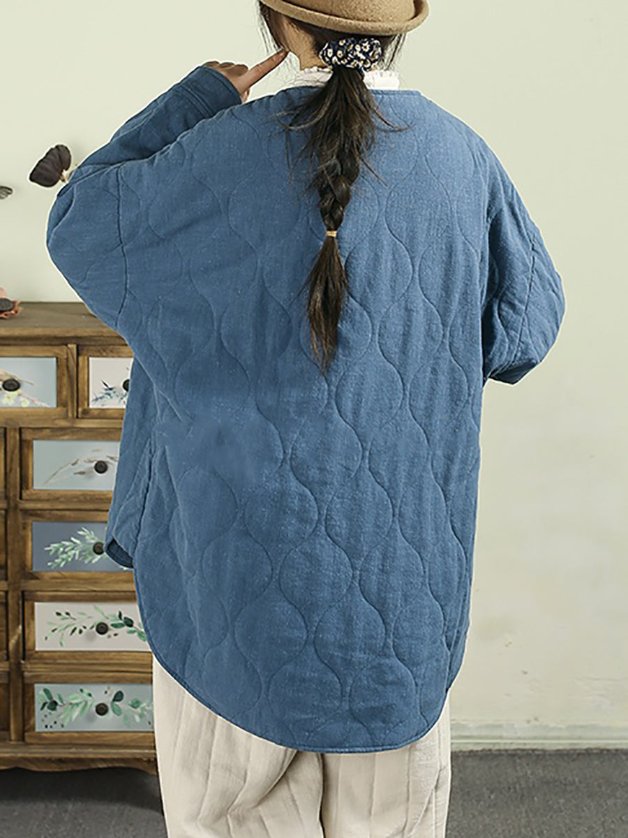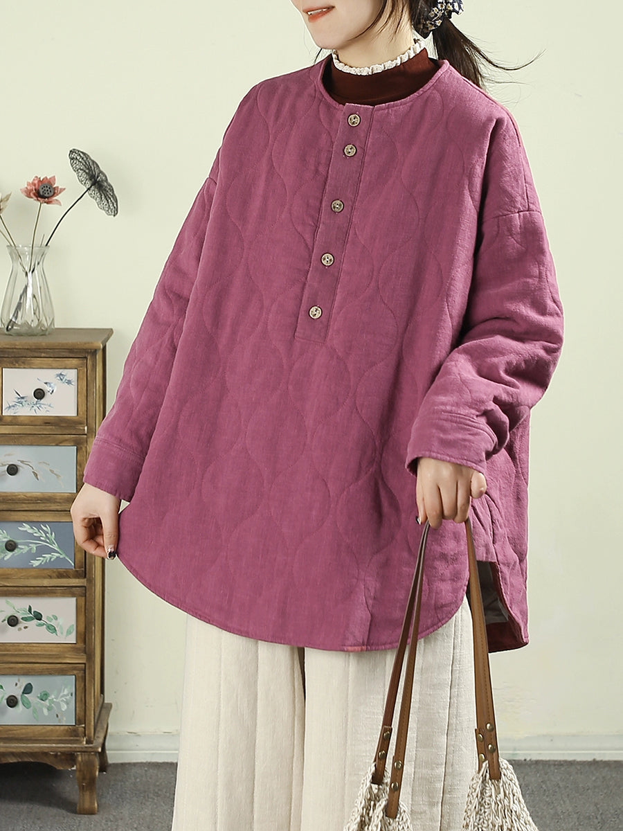 Women Winter Casual 100%Linen O-Neck Padded Coat