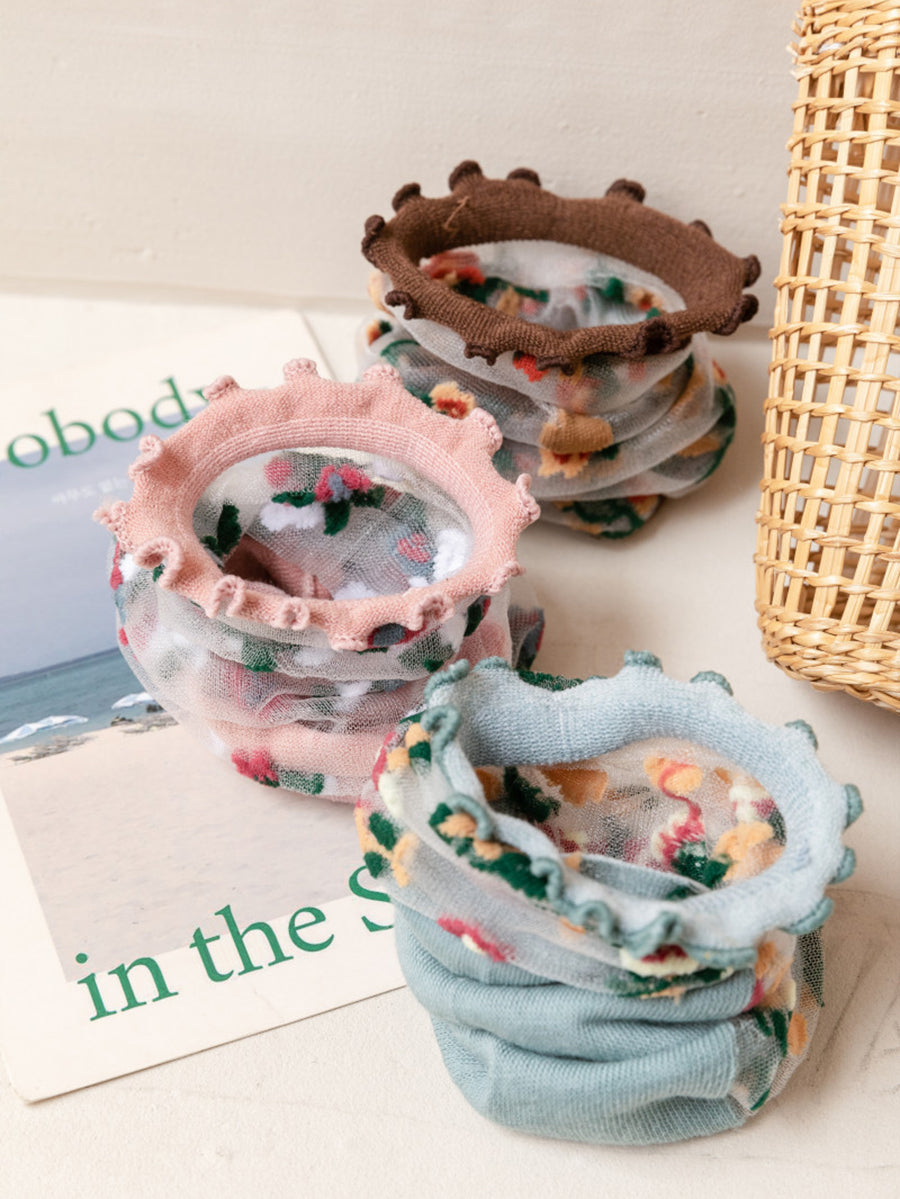 5 Pairs Women Summer Floral Lace Spliced Socks