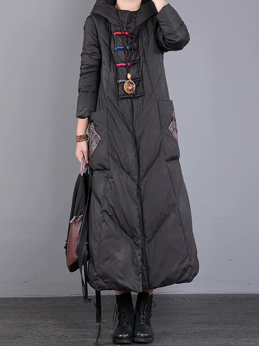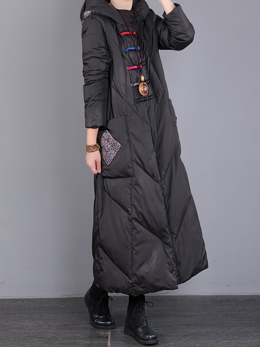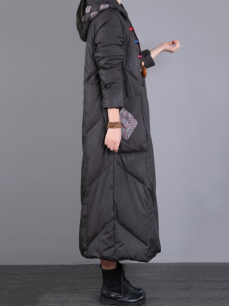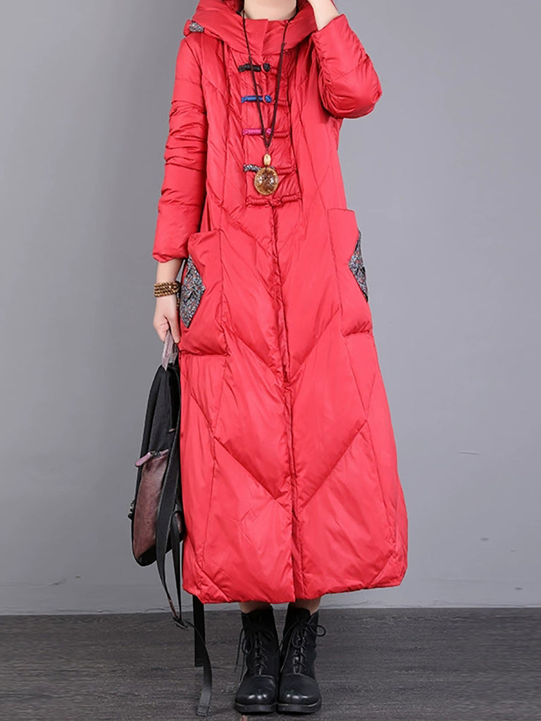 Women Winter Retro Emrboidery Padded Long Coat