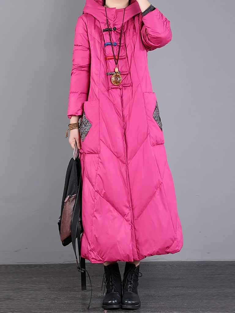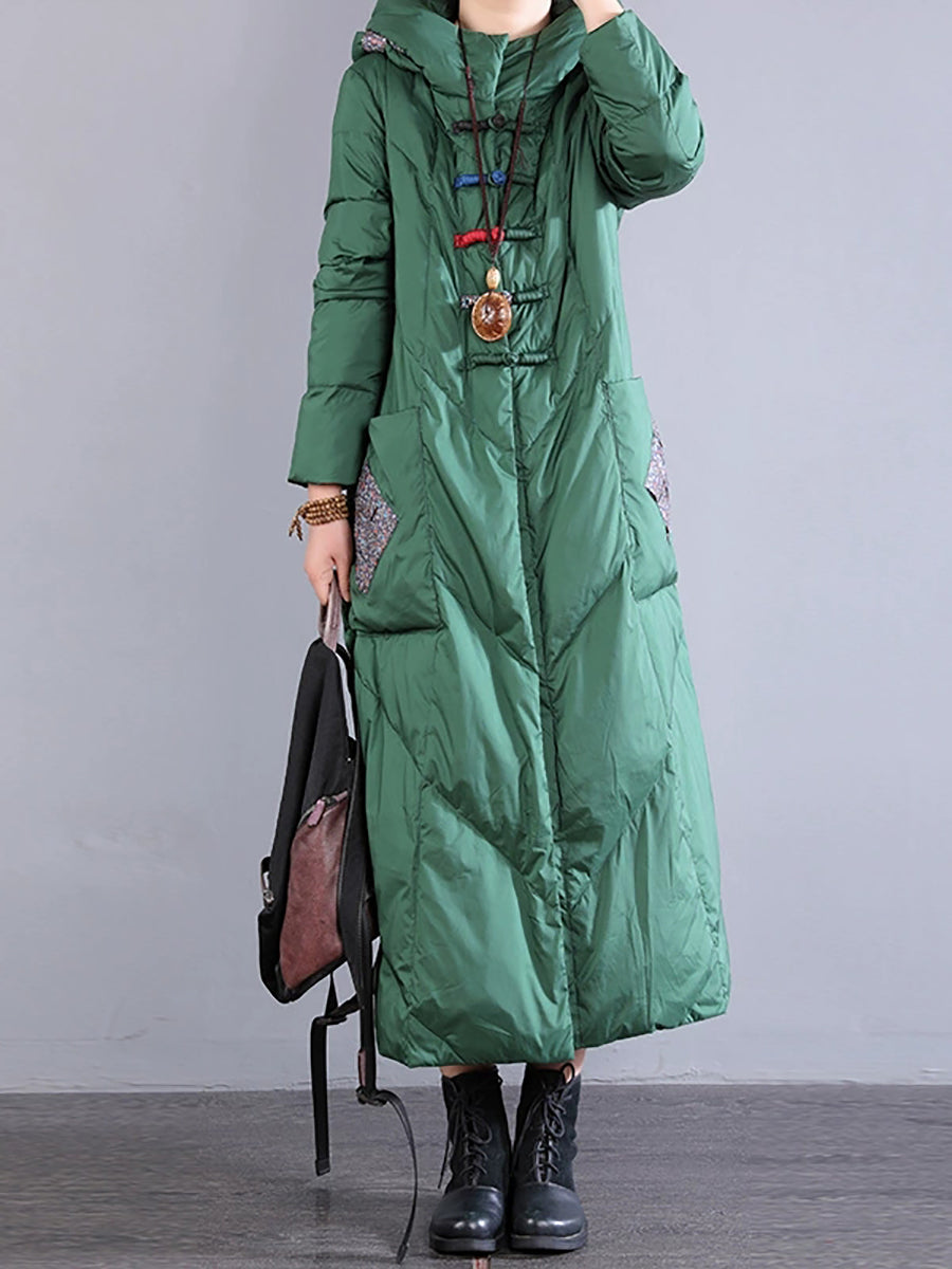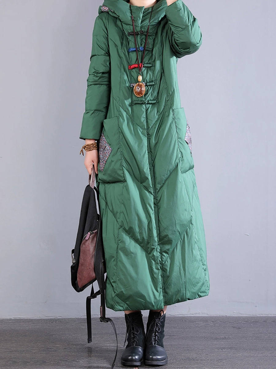 Women Winter Retro Emrboidery Padded Long Coat