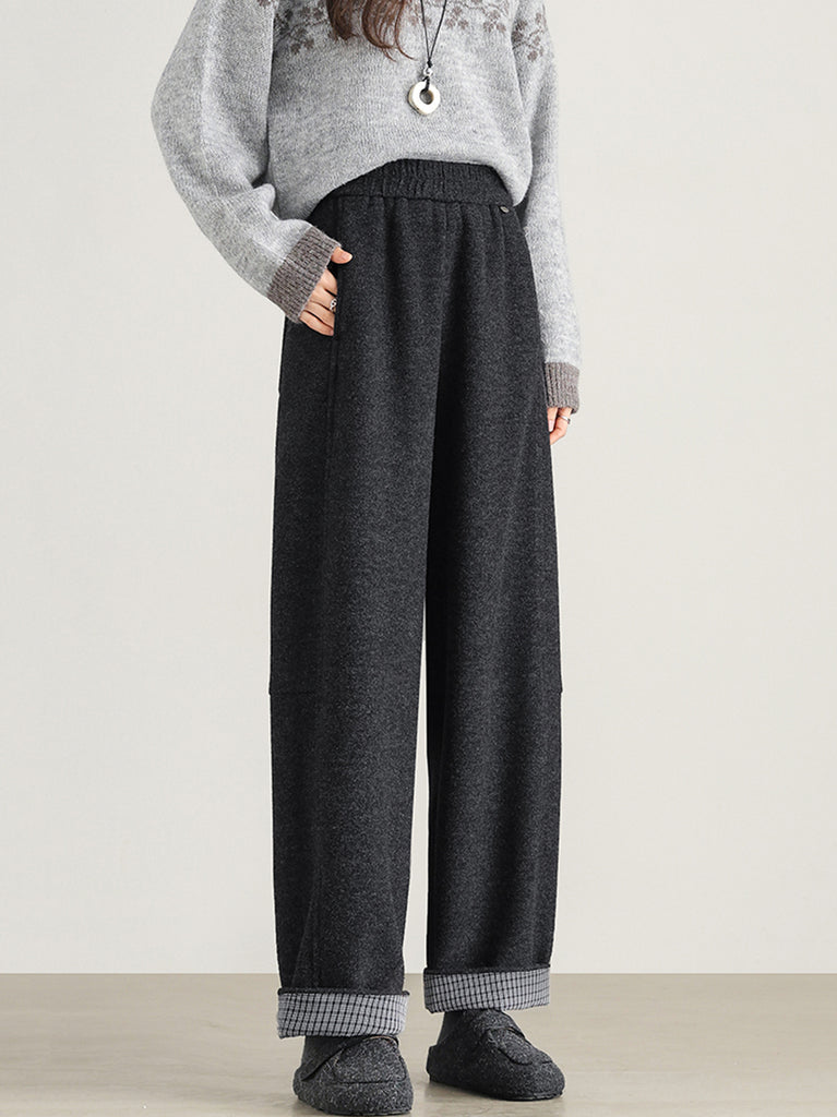 Plus Size Women Autumn Retro Plaid Loose Wide-leg Pants