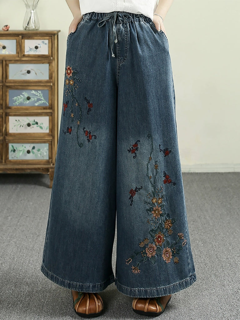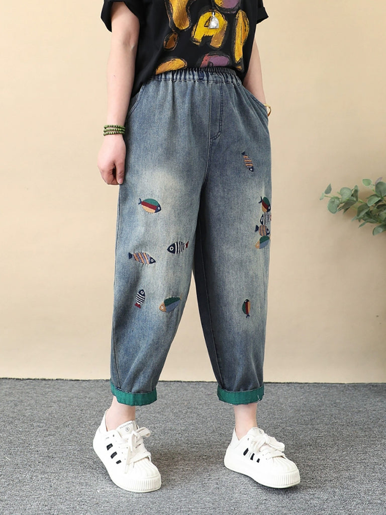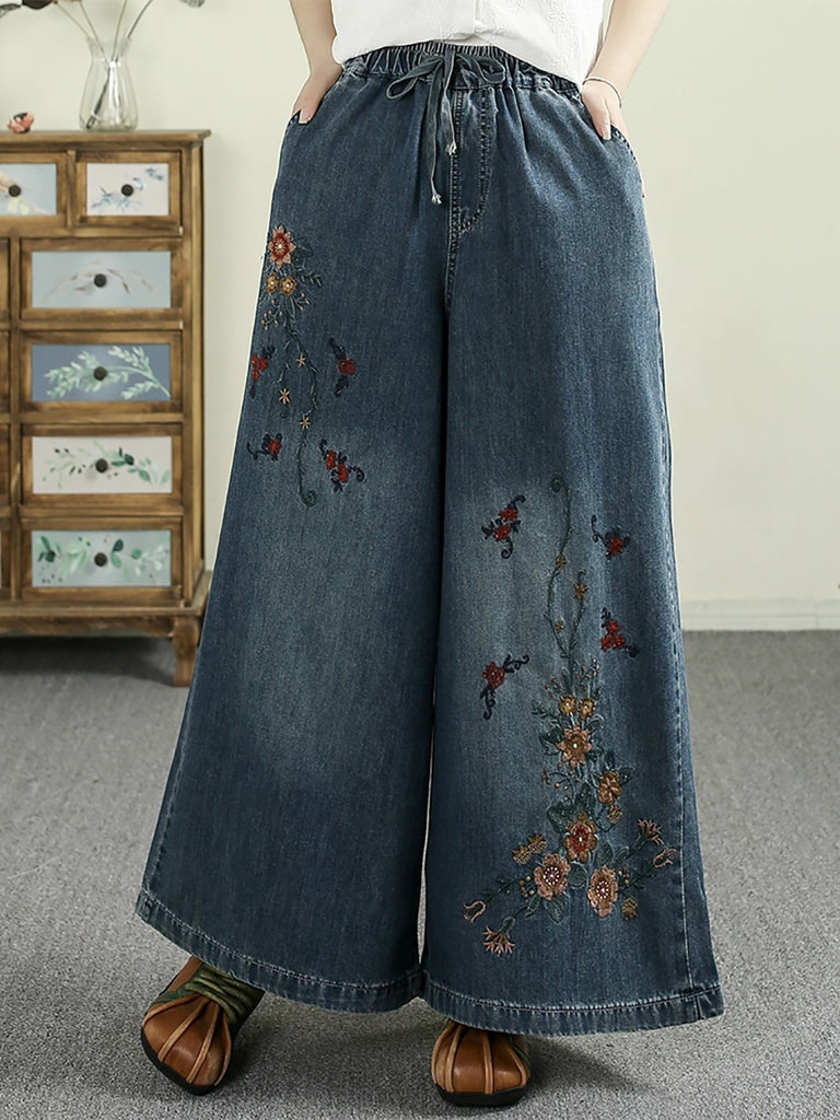 Women Artsy Autumn Embroidery 100%Cotton Shirt
