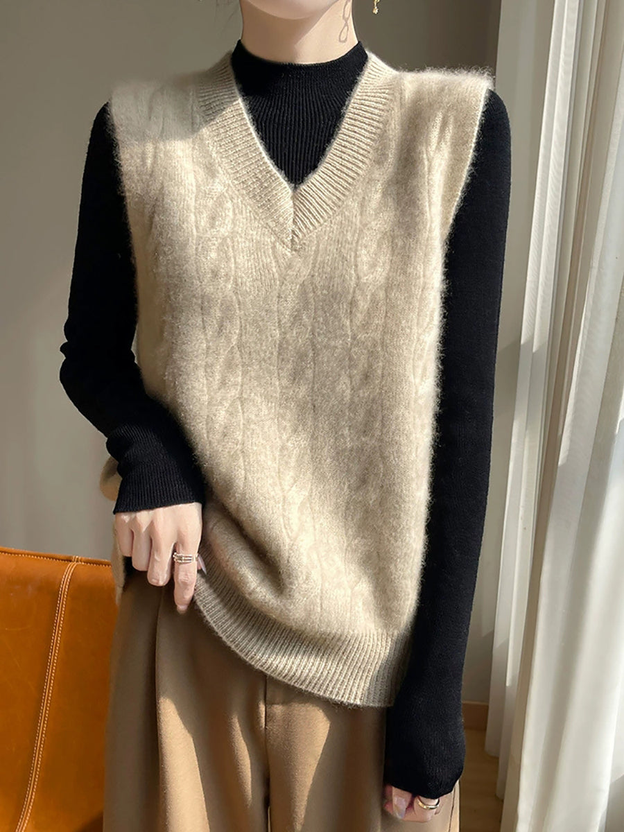 Women Autumn Casual Pure Color V-Neck Knitted Vest