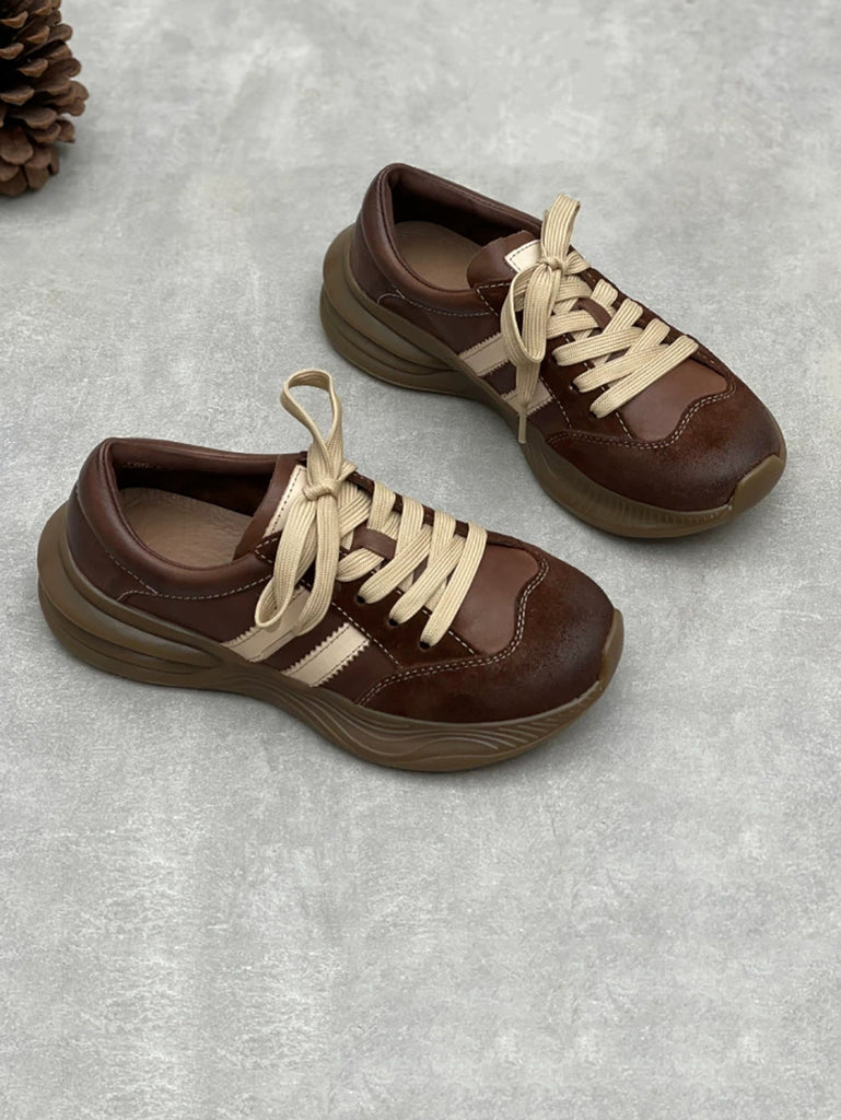 Women Vintage Colorblock Genuine Leather Sport Shoes