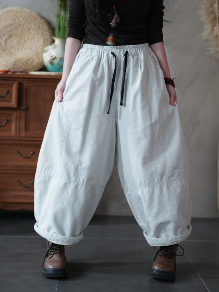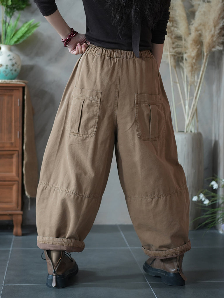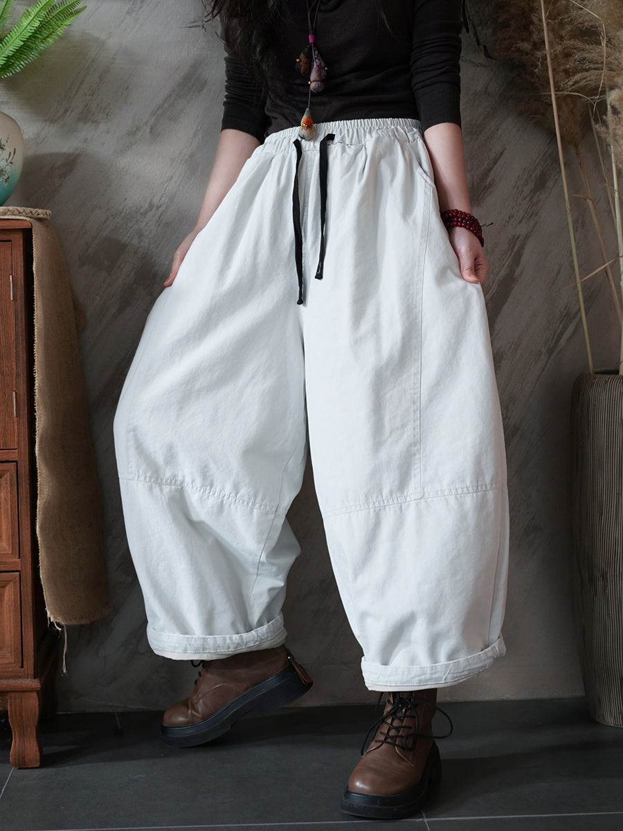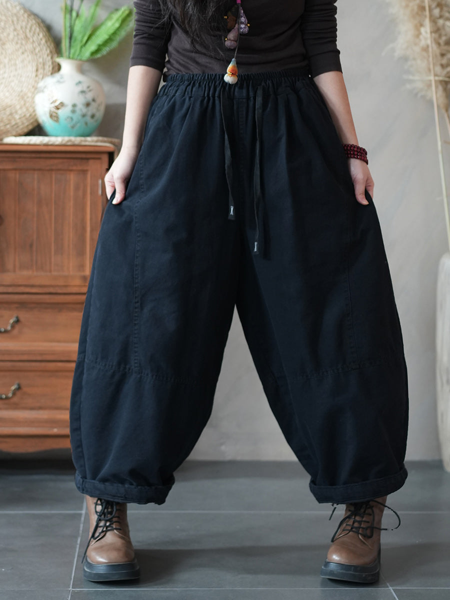 Women Winter Retro Pure Color 100%Cotton Harem Pants