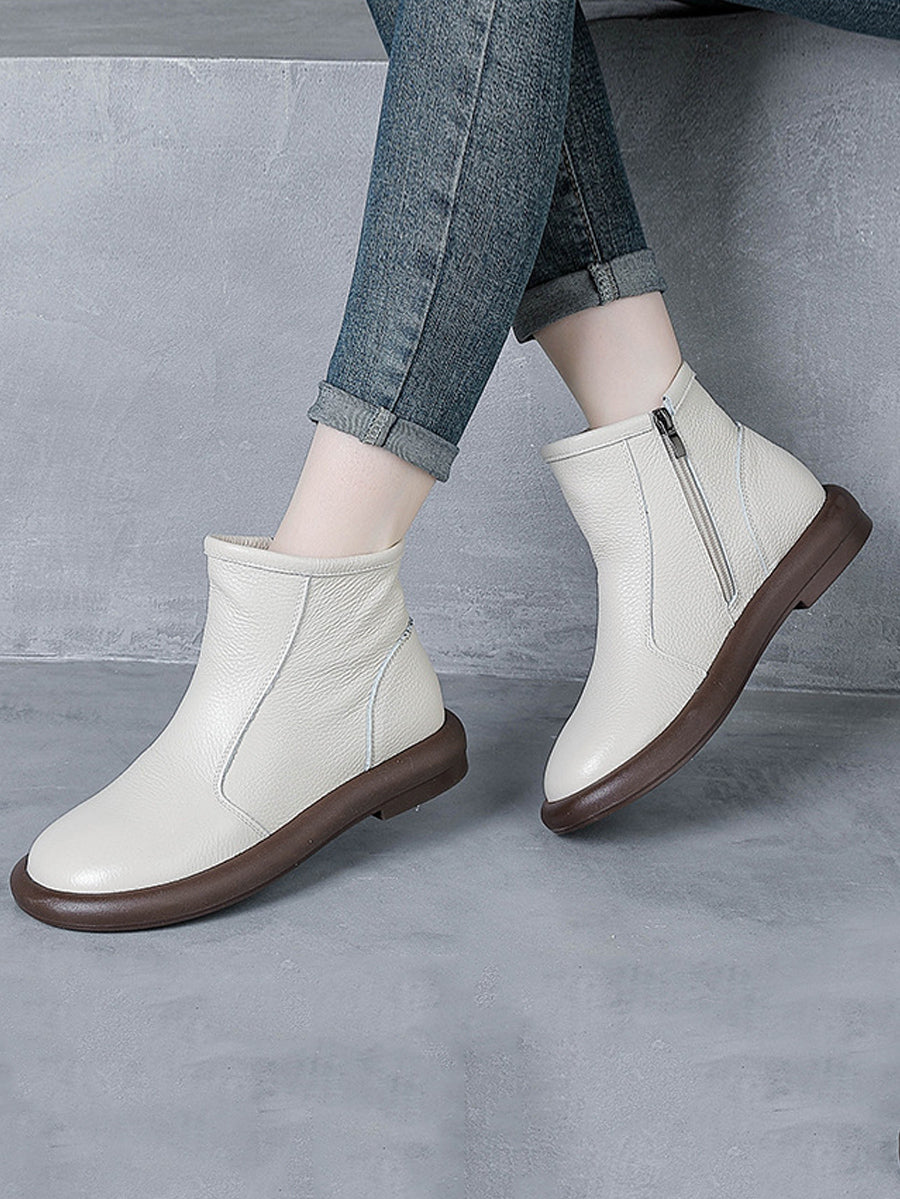 Women Winter Genuine Leather Fleece-lined Ankle Boots
