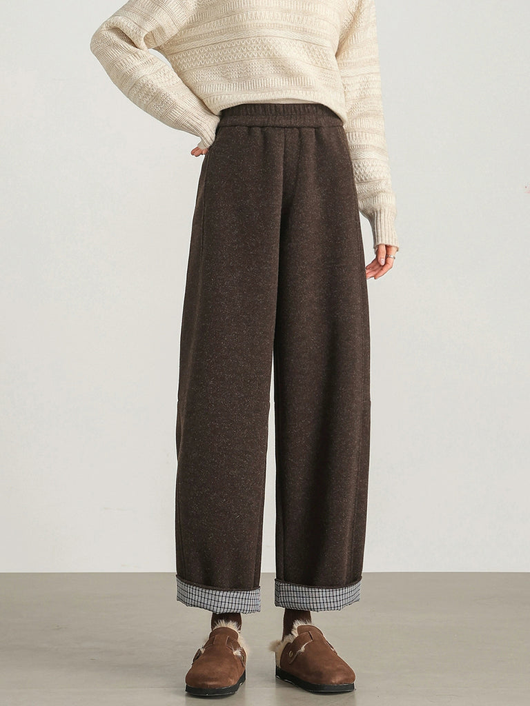 Women Winter Casual Pure Color Fleece-lined Straight Pants