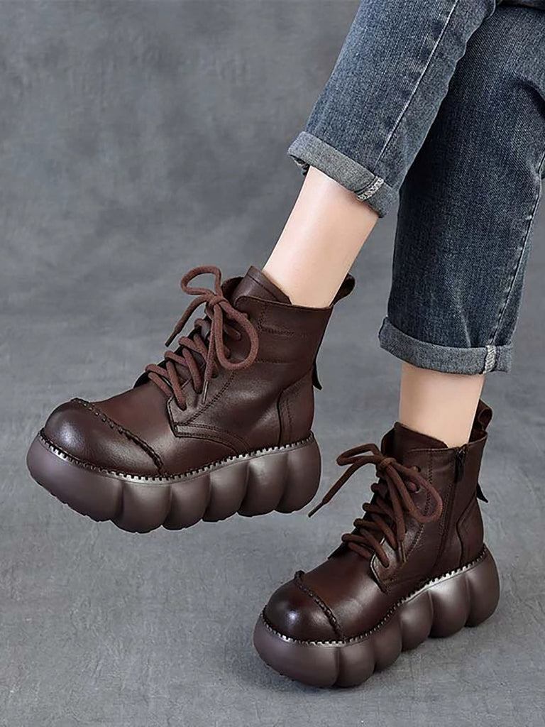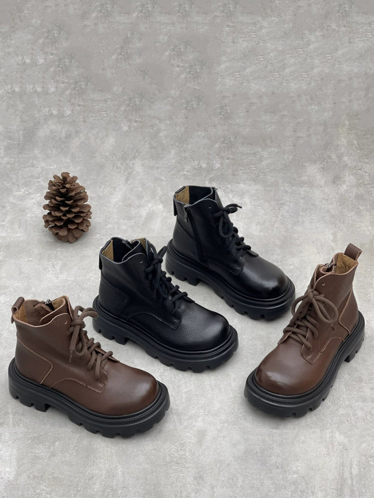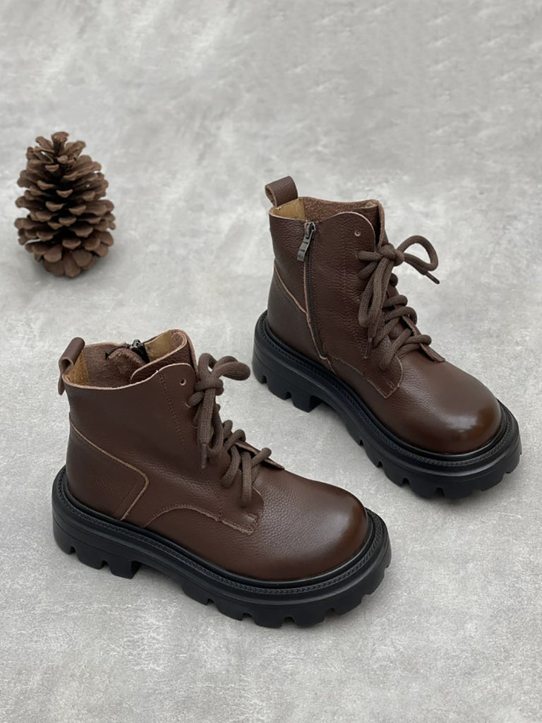 Women Winter Genuine Leather Fleece-lined Martin Boots