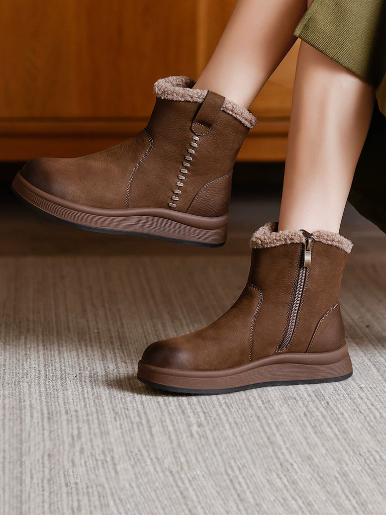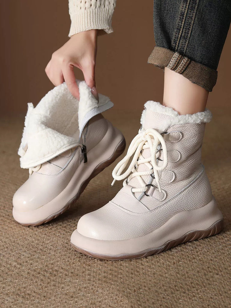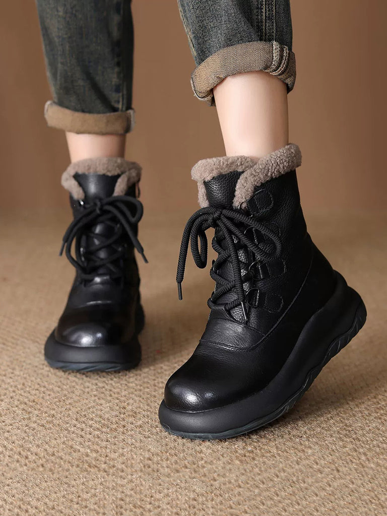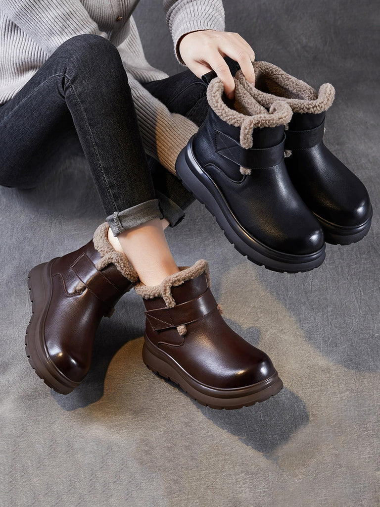 Women Winter Casual Genuine Leather Fleece-lined Boots
