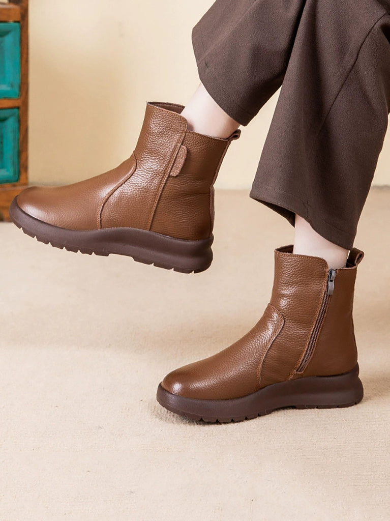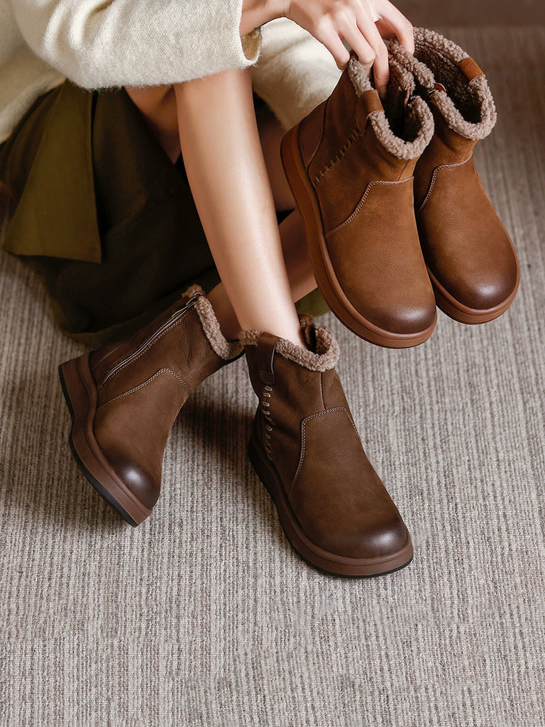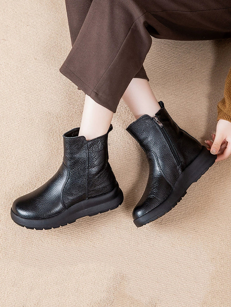Women Winter Solid Leather Fleece-lined Ankle Boots