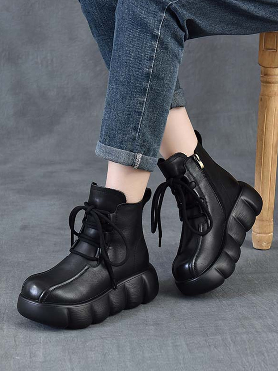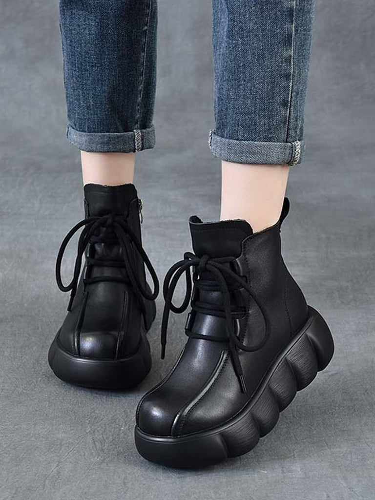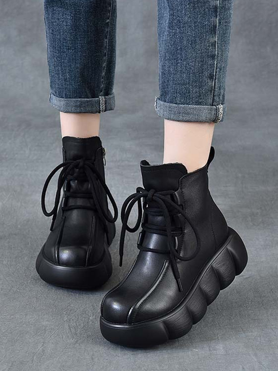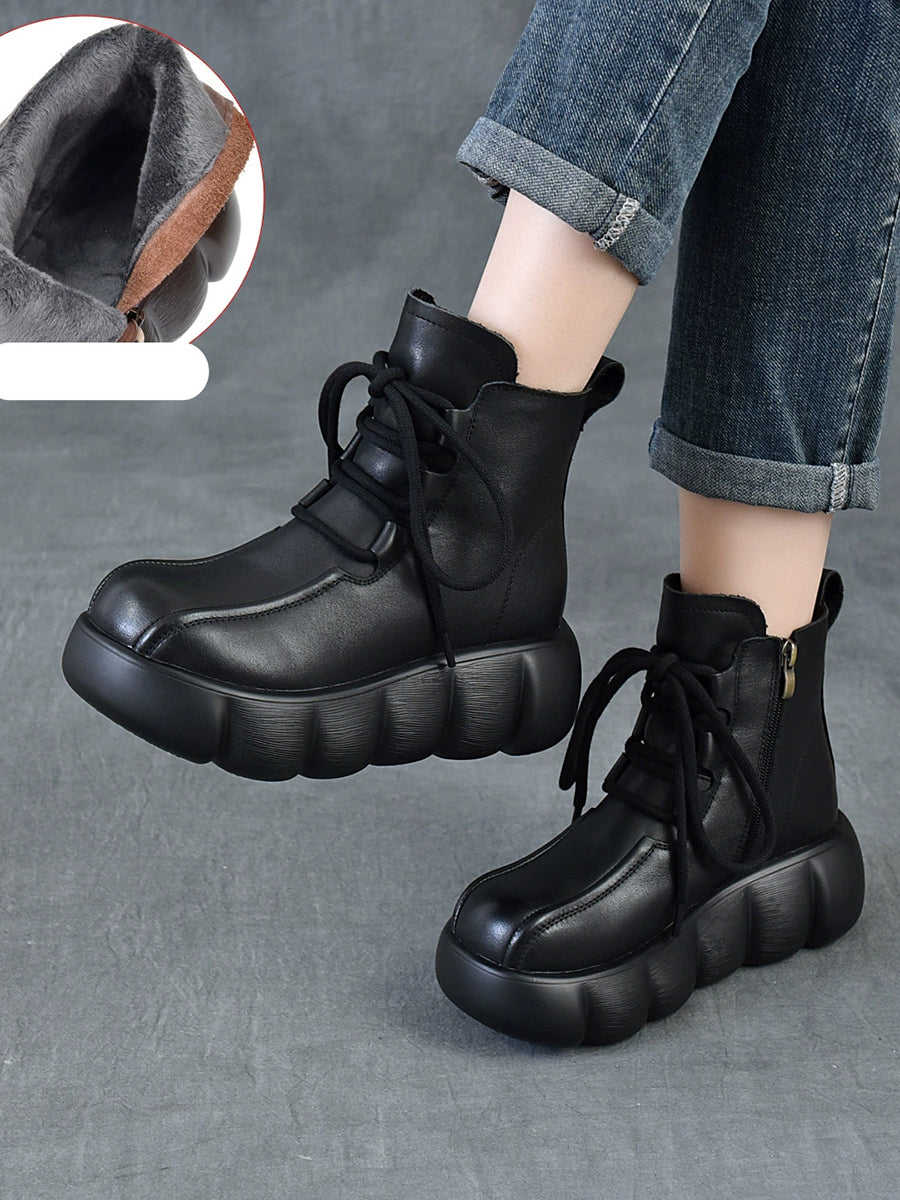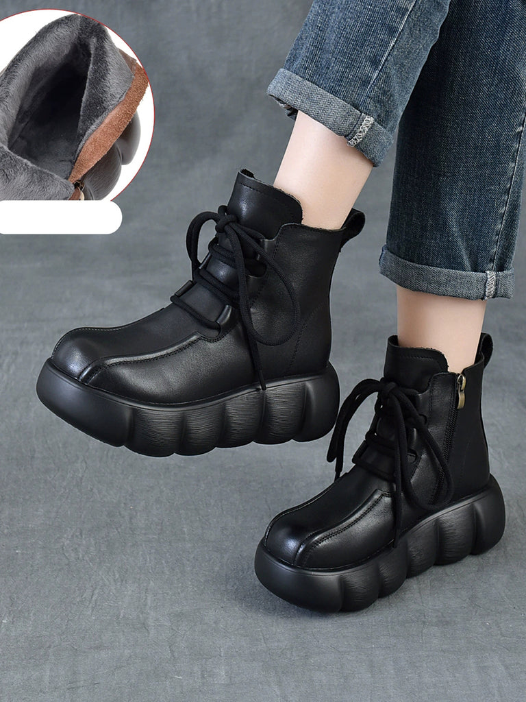 Women Winter Genuine Leather Spliced Martin Boots