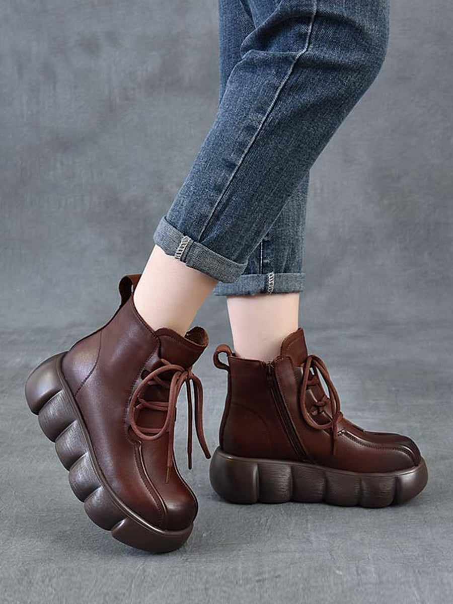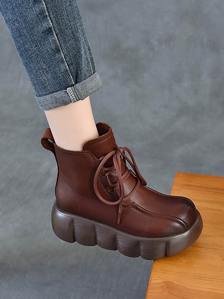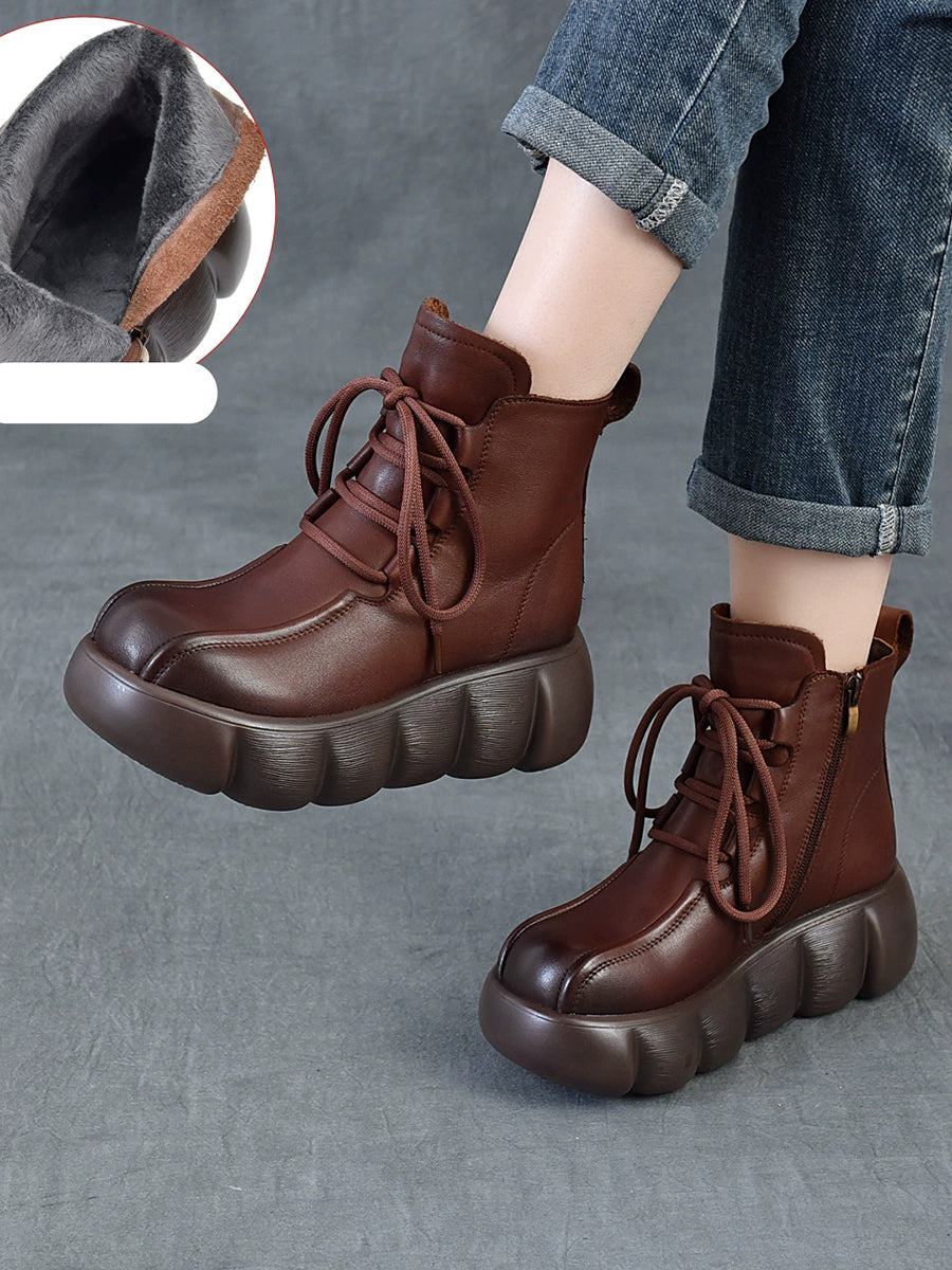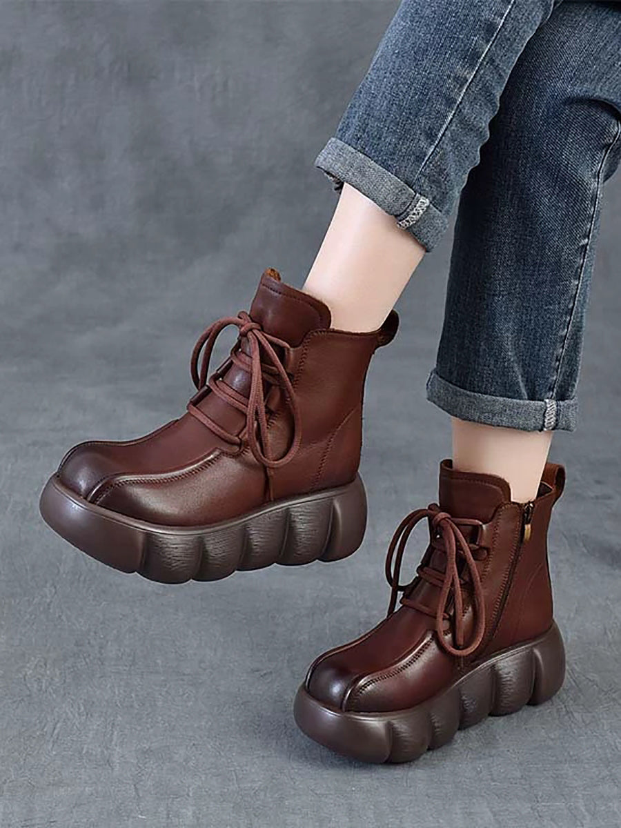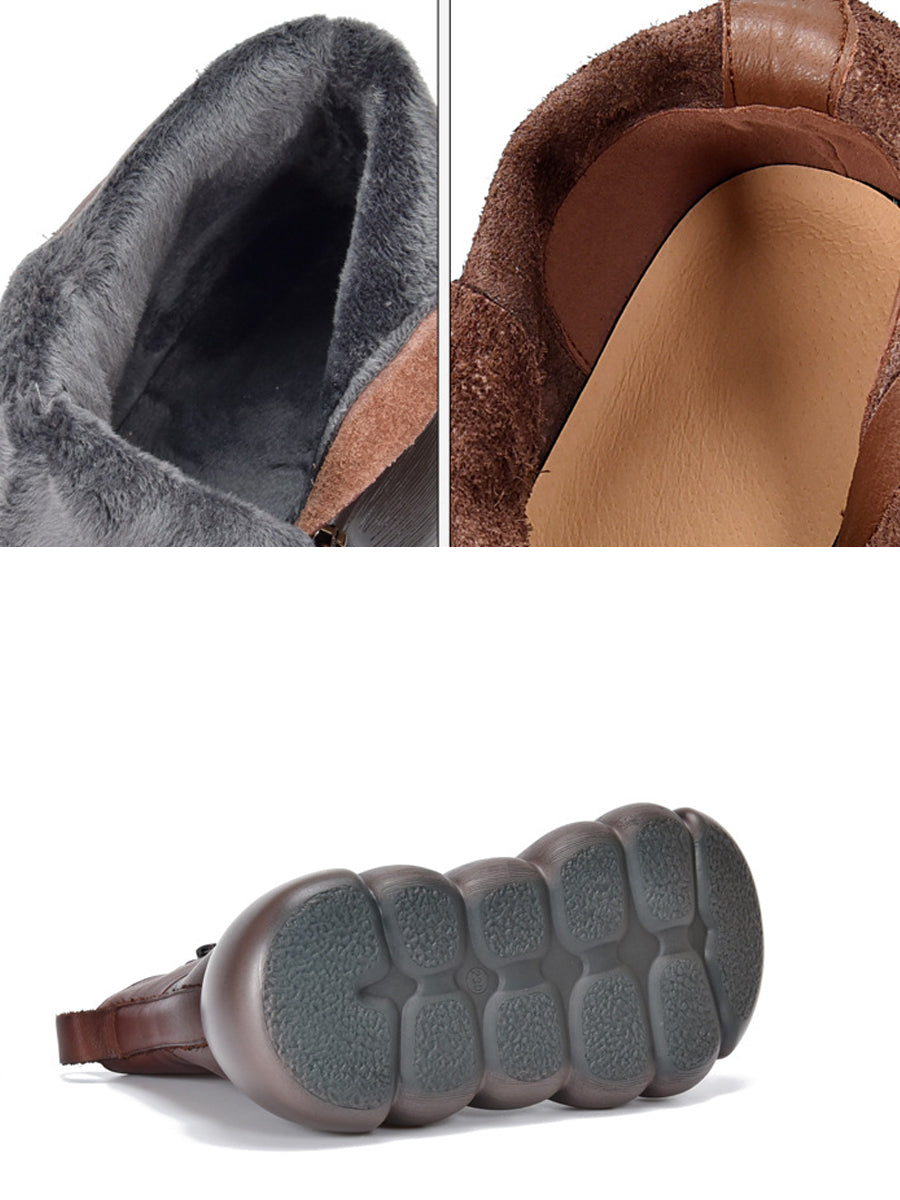 Women Winter Genuine Leather Spliced Martin Boots