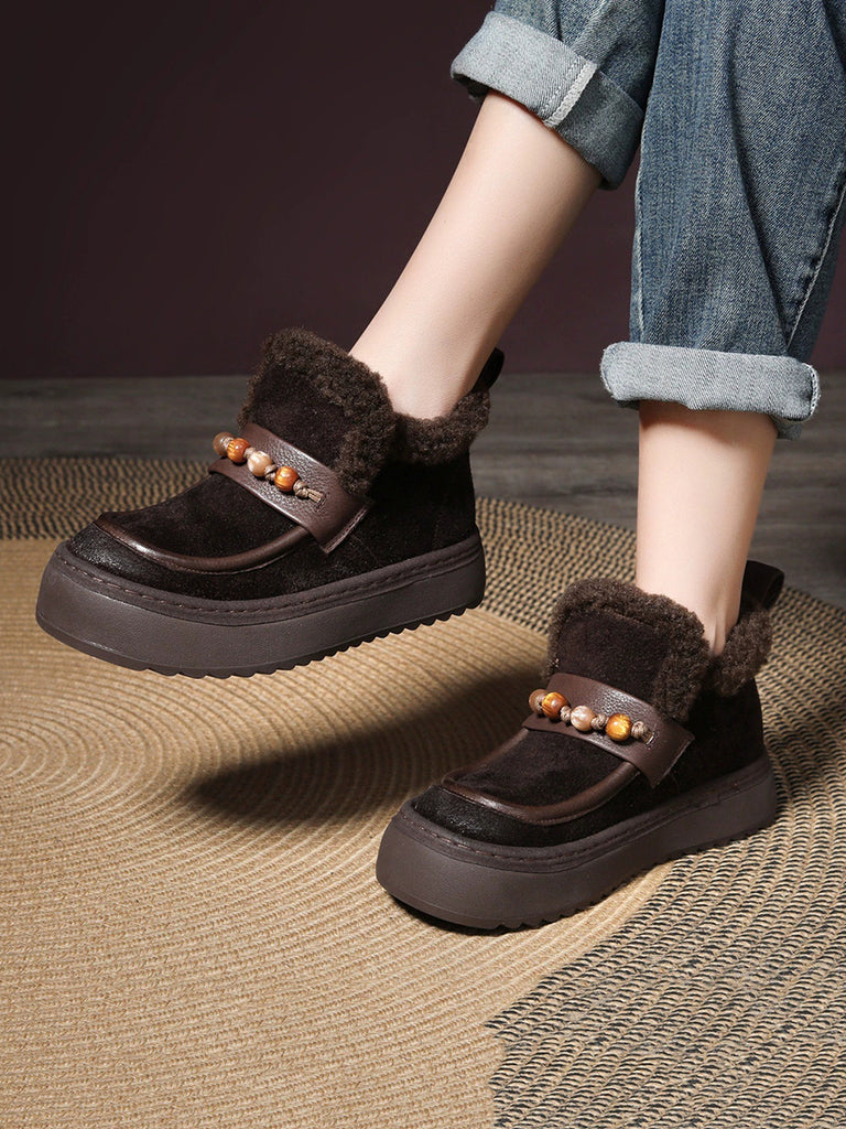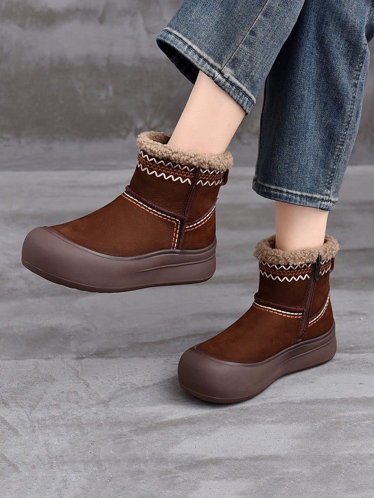 Women Winter Ethnic Genuine Leather Fleece-lined Snow Boots