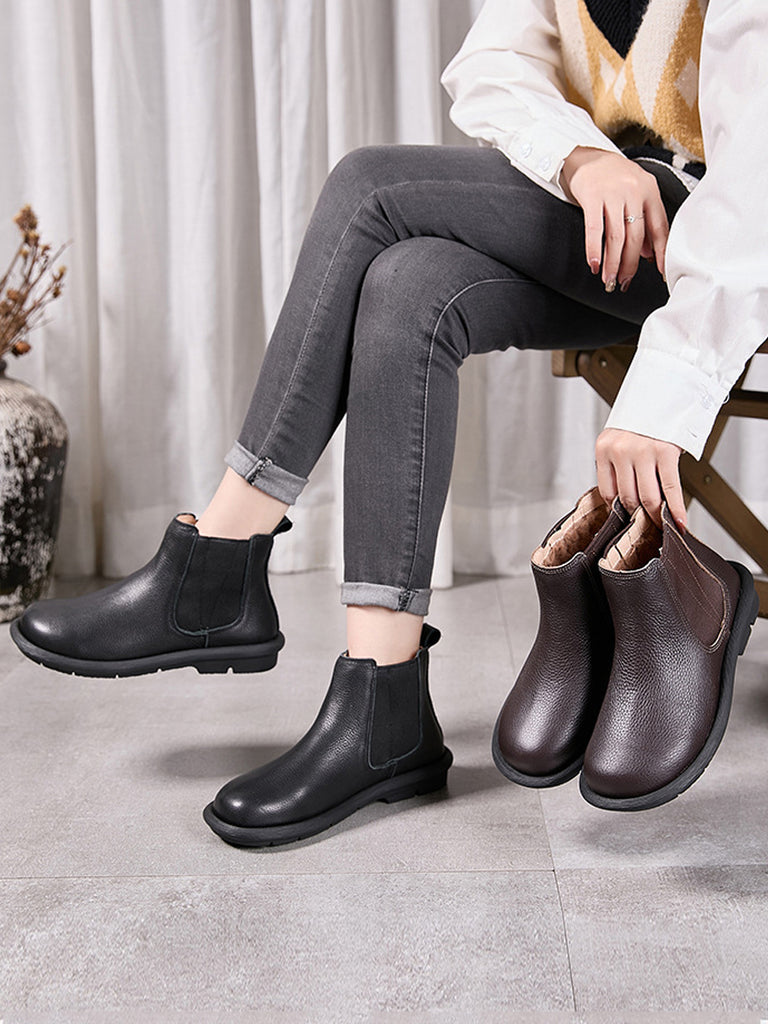 Women Winter Genuine Leather Fleece-lined Chelsea Boots