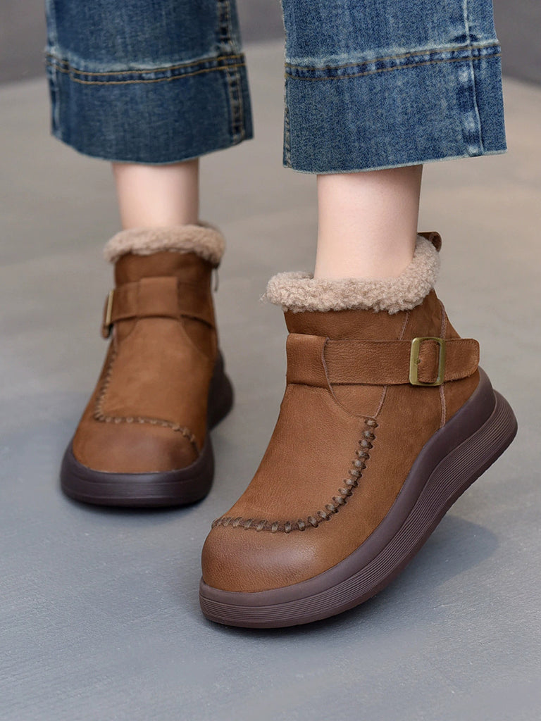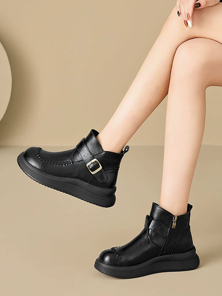 Women Genuine Leather Platform Fleece-lined Ankle Boots