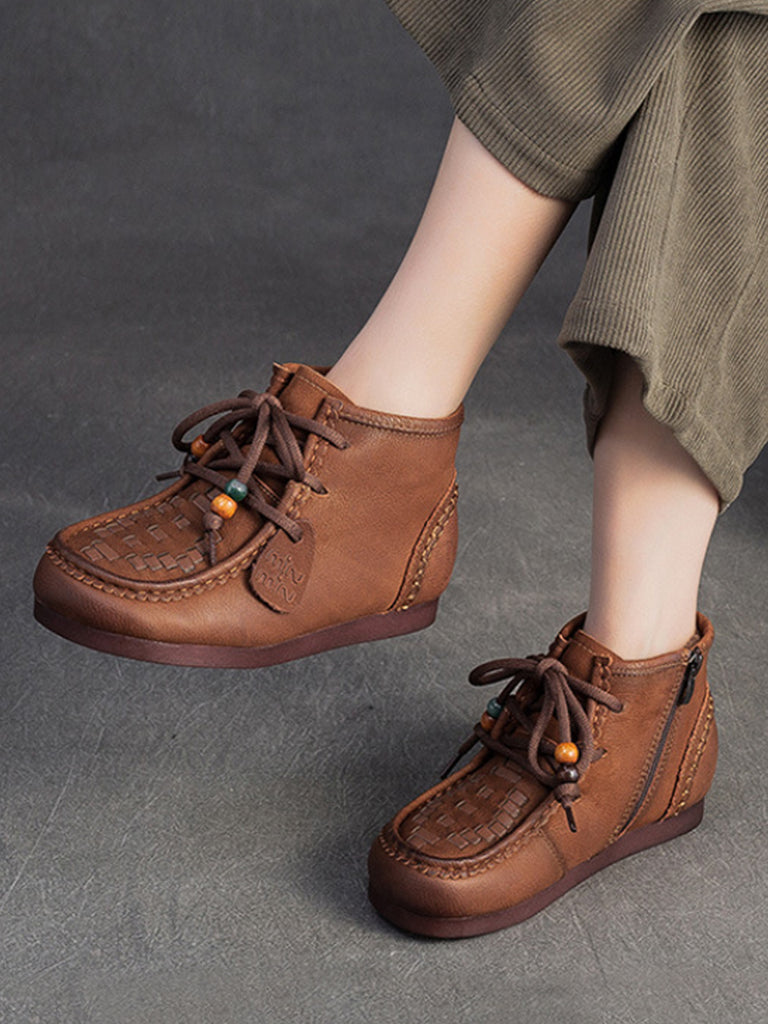 Women Vintage Genuine Leather Spliced Ankle Boots