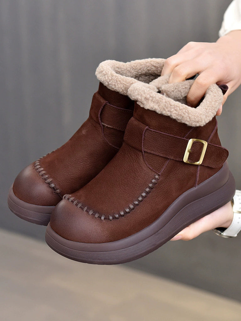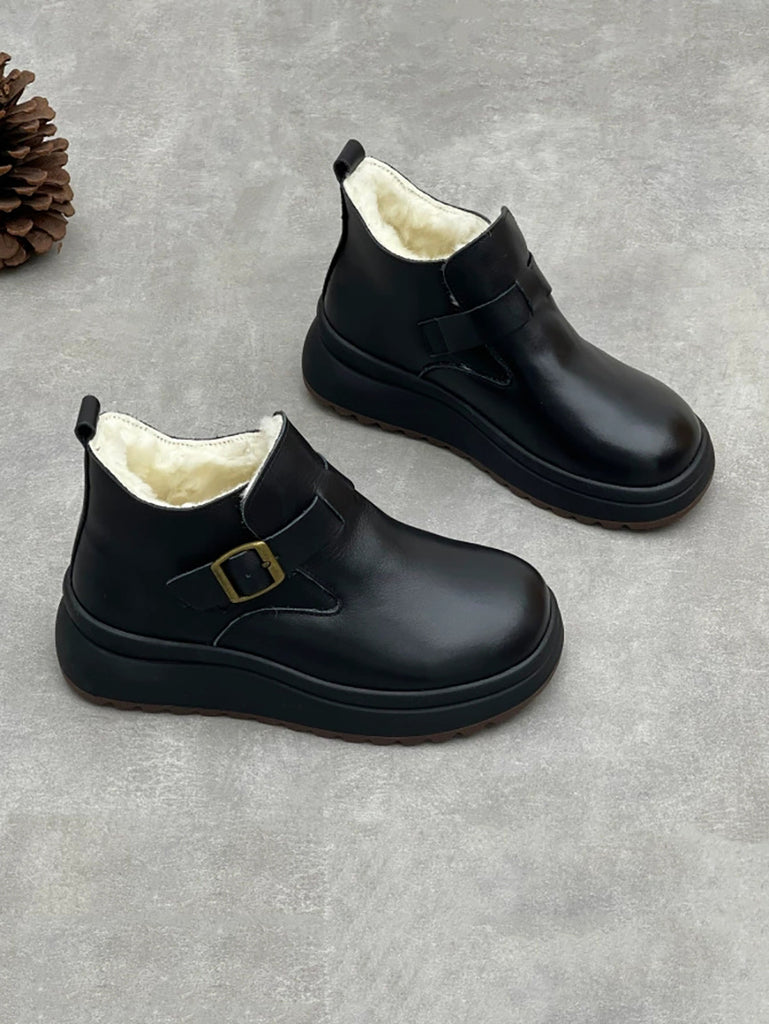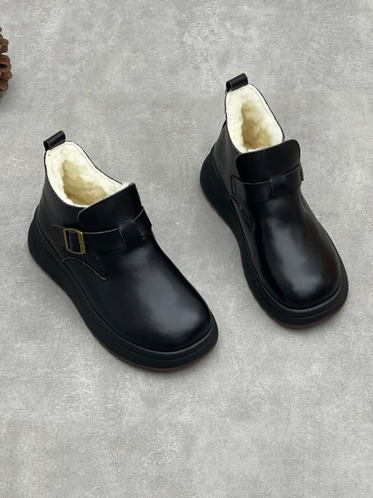 Women Winter Genuine Leather Fleece-lined Ankle Boots