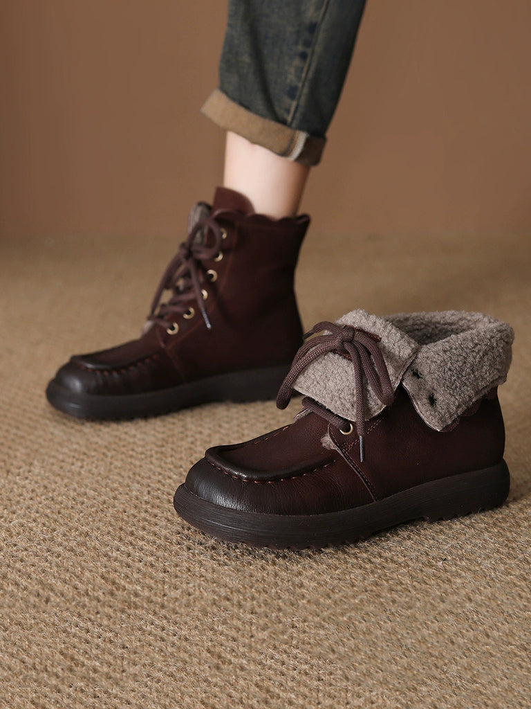 Women Vintage Winter Leather Fleece-lined Boots
