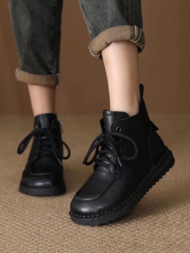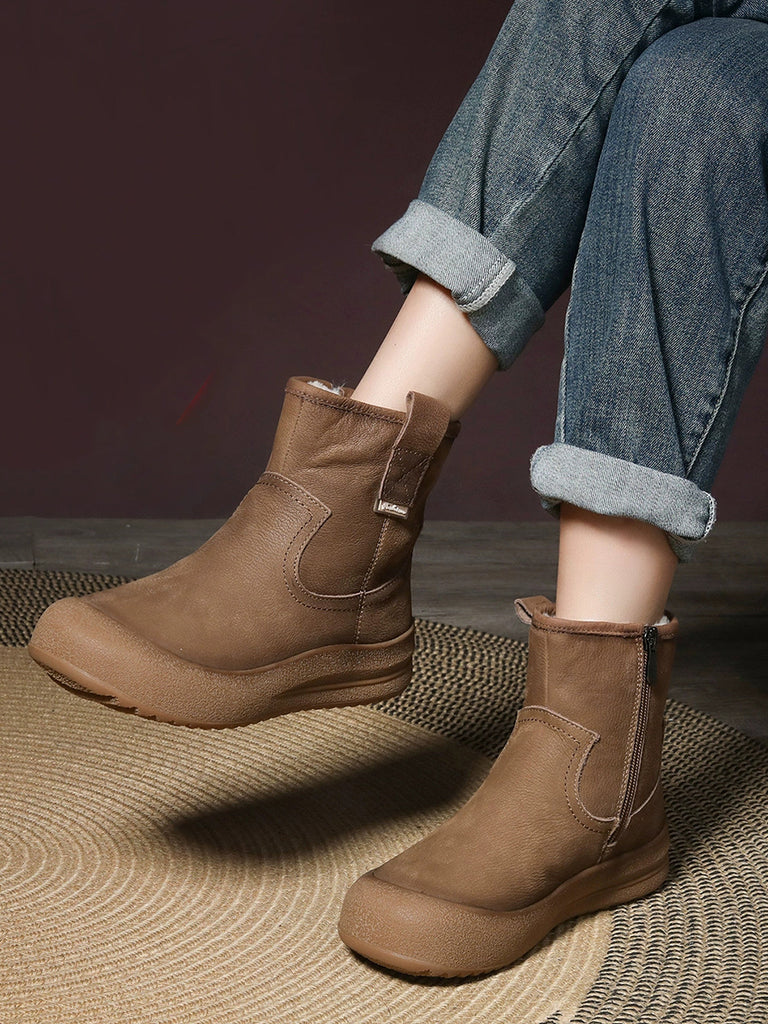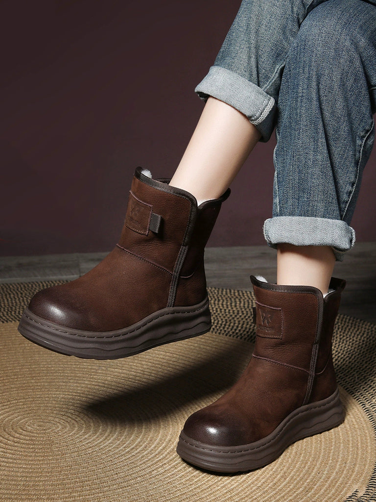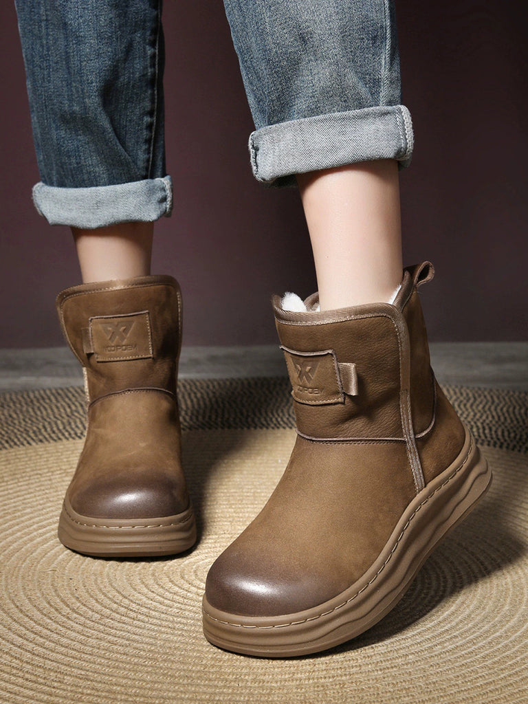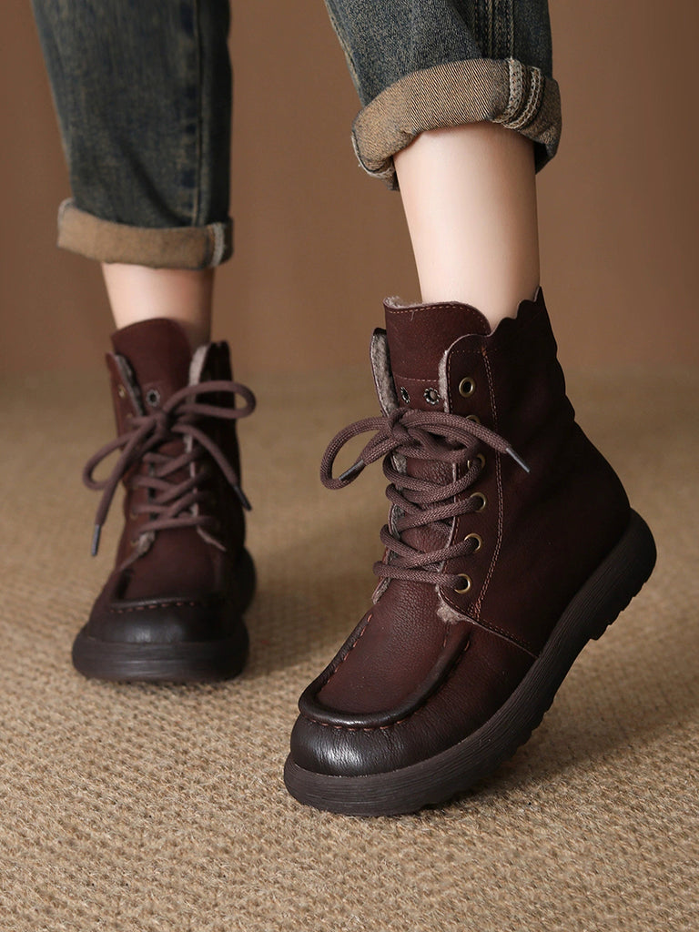 Women Vintage Genuine Leather Fleece-lined Boots