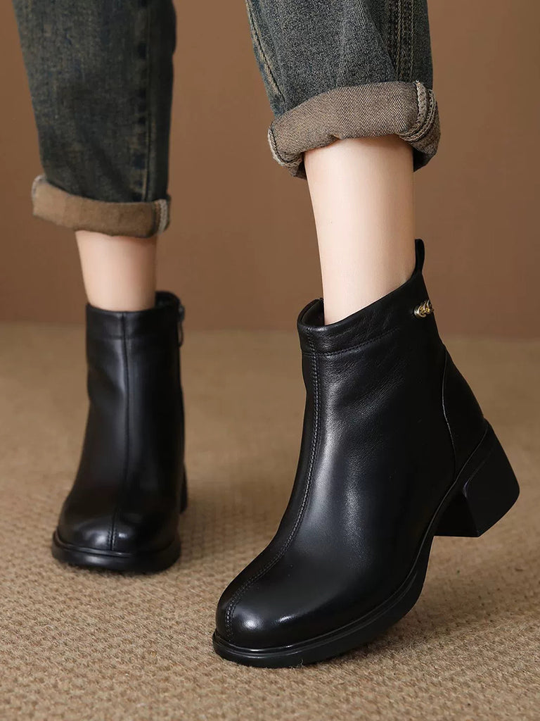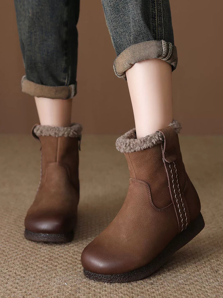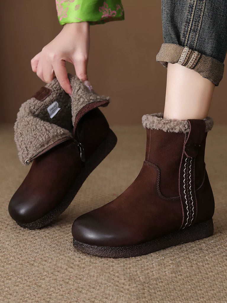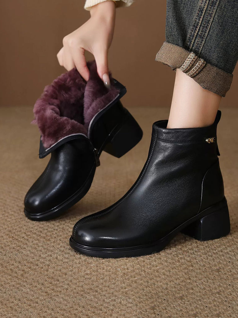 Women Genuine Leather Spliced Fleece-lined Ankle Boots