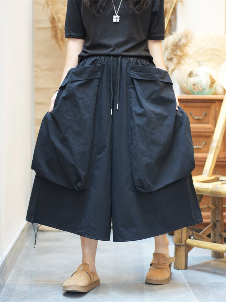 Women Winter Vintage Pure Color Corduroy Wide-leg Pants