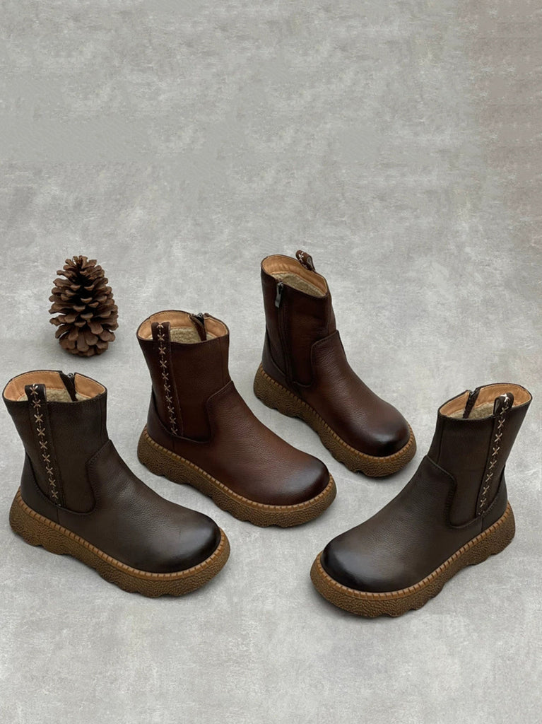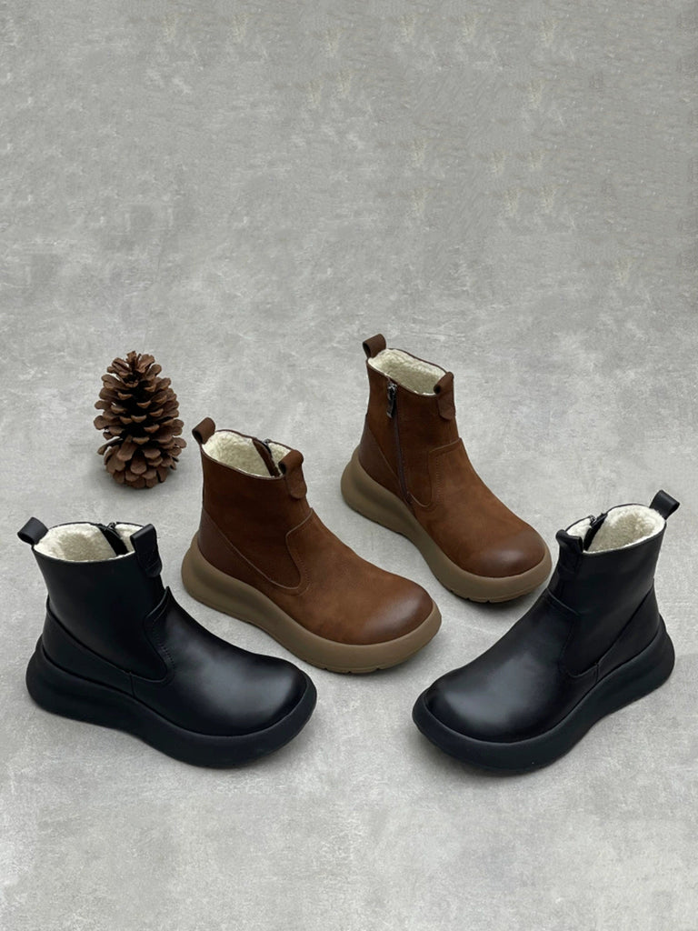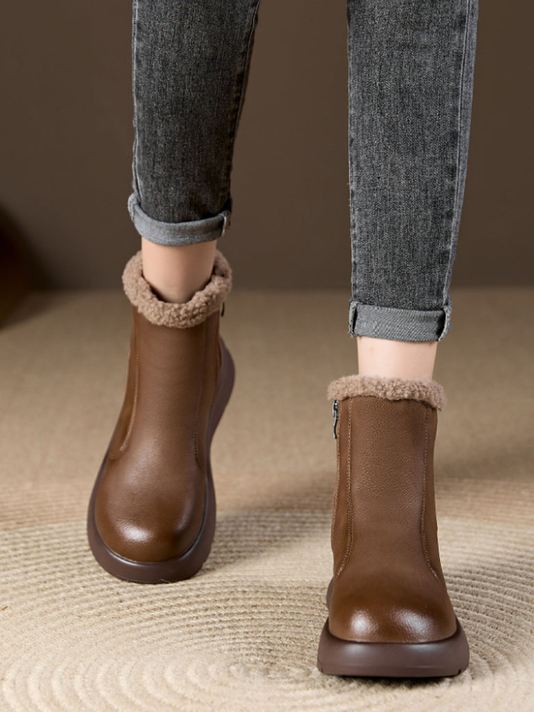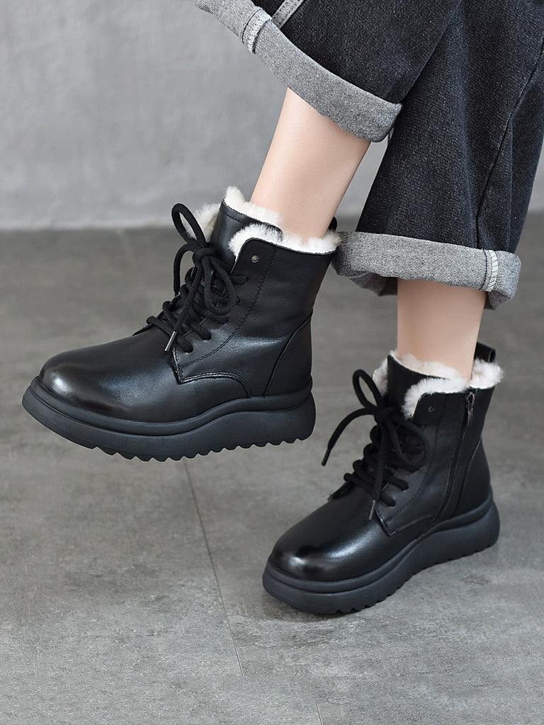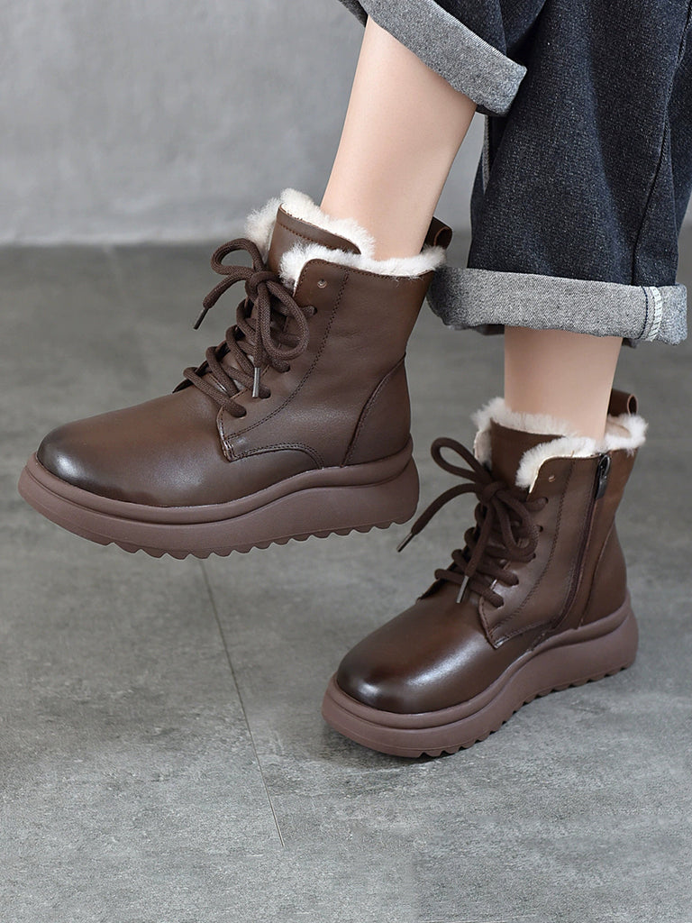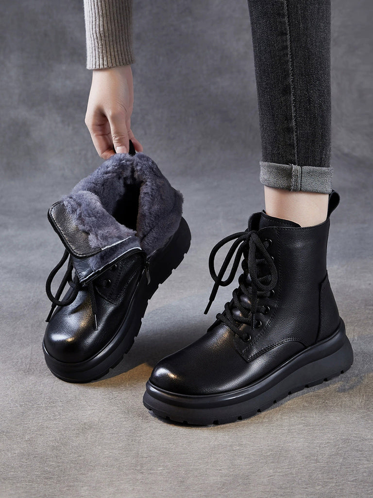 Women Vintage Genuine Leather Fleece-lined Platform Boots