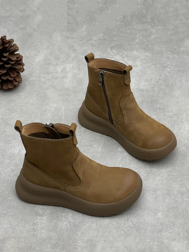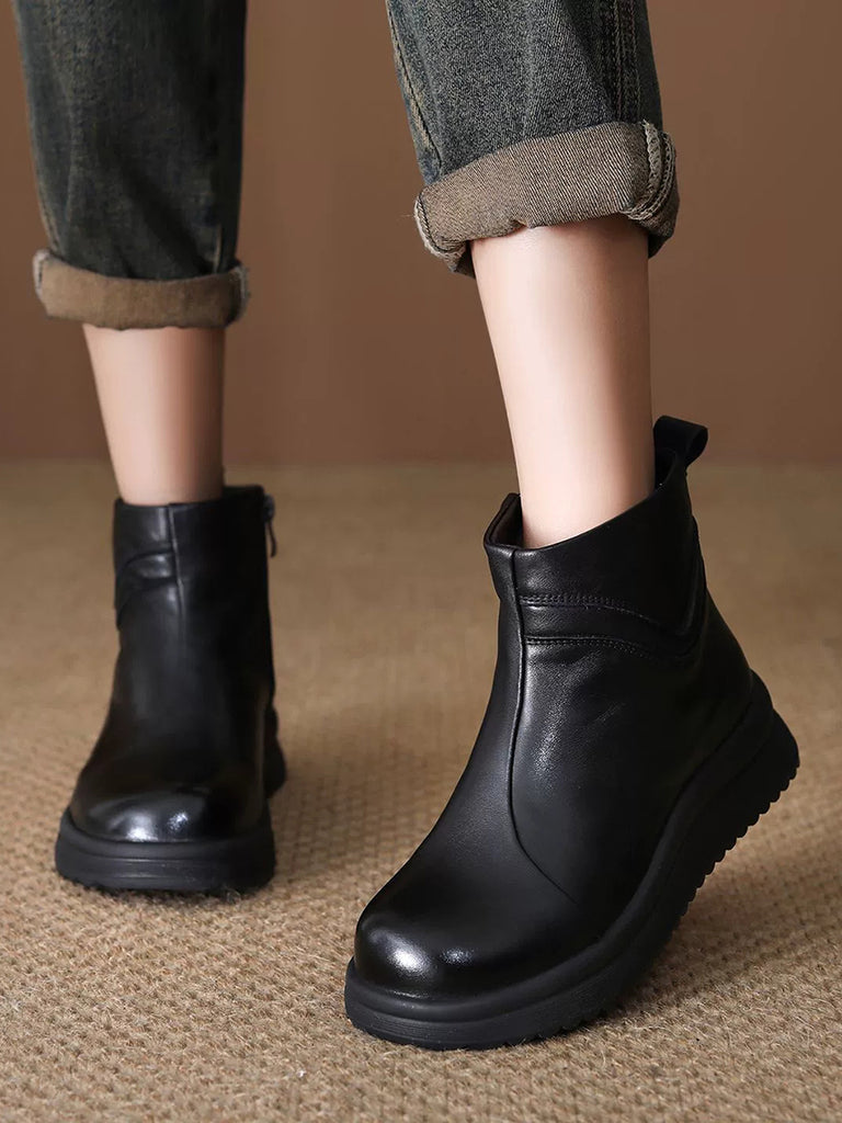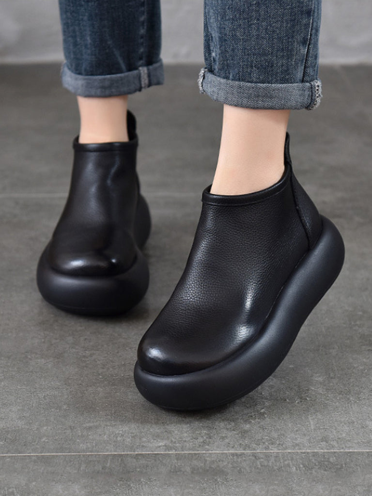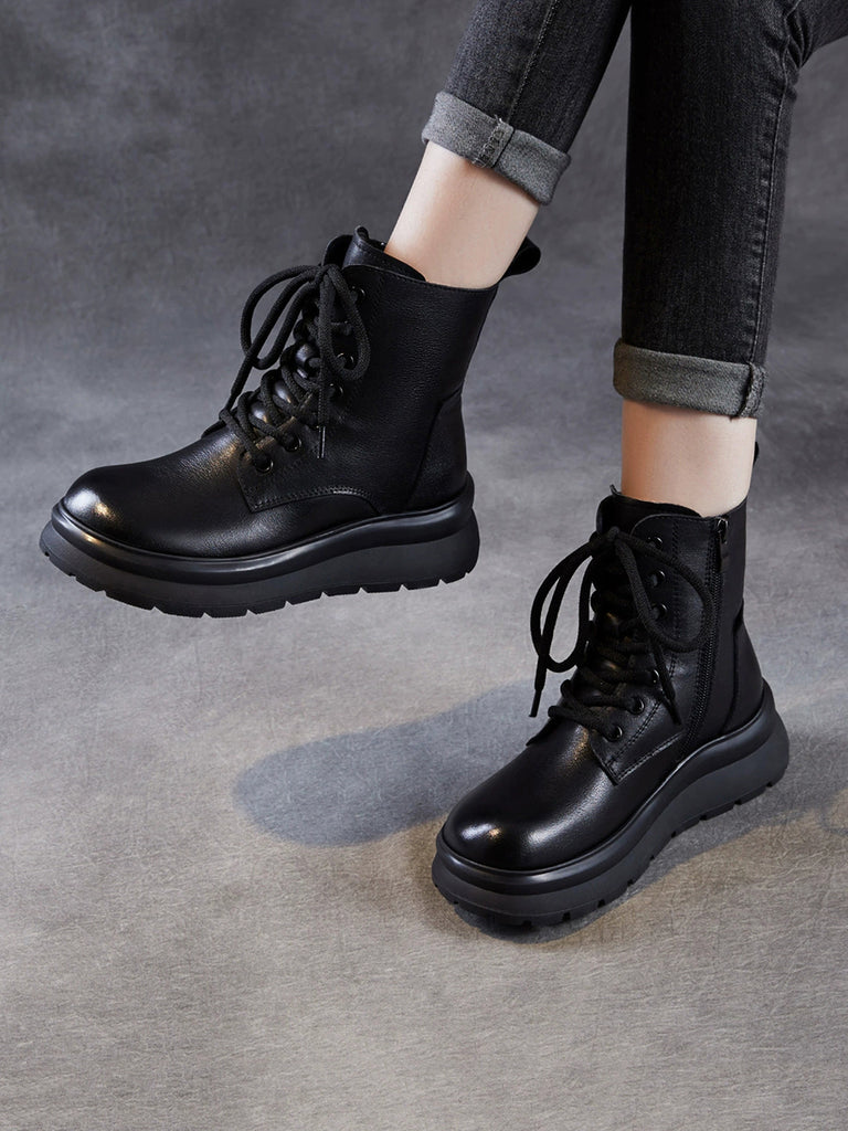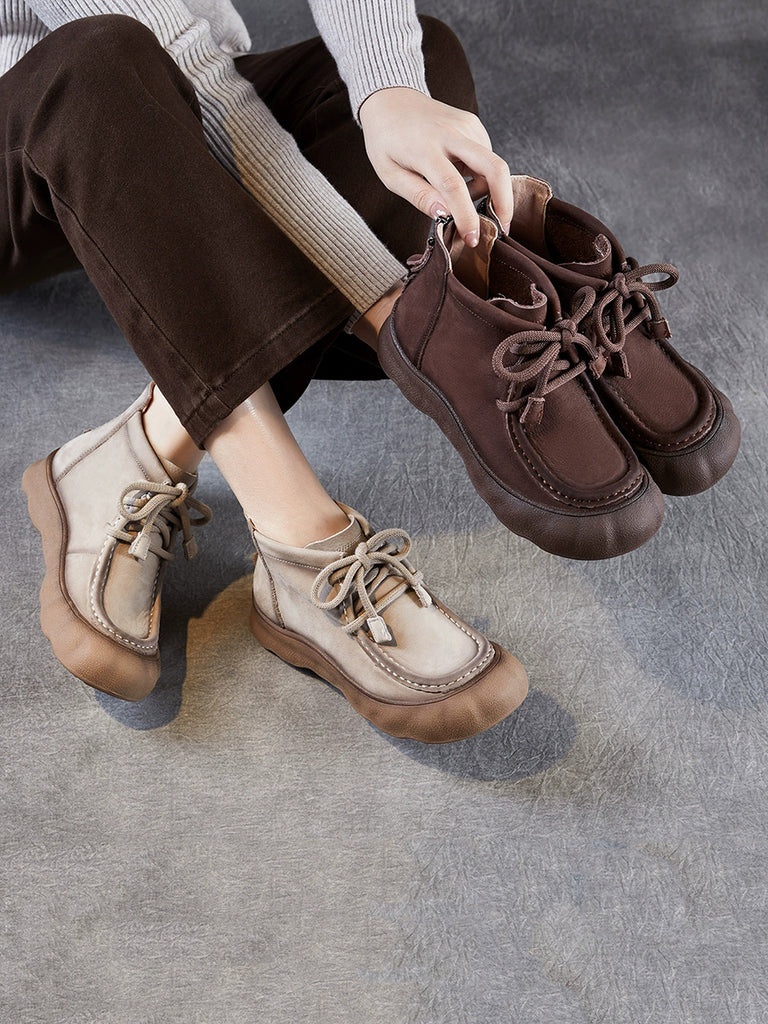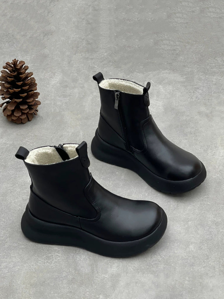 Women Vintage Genuine Leather Fleece-lined Platform Boots