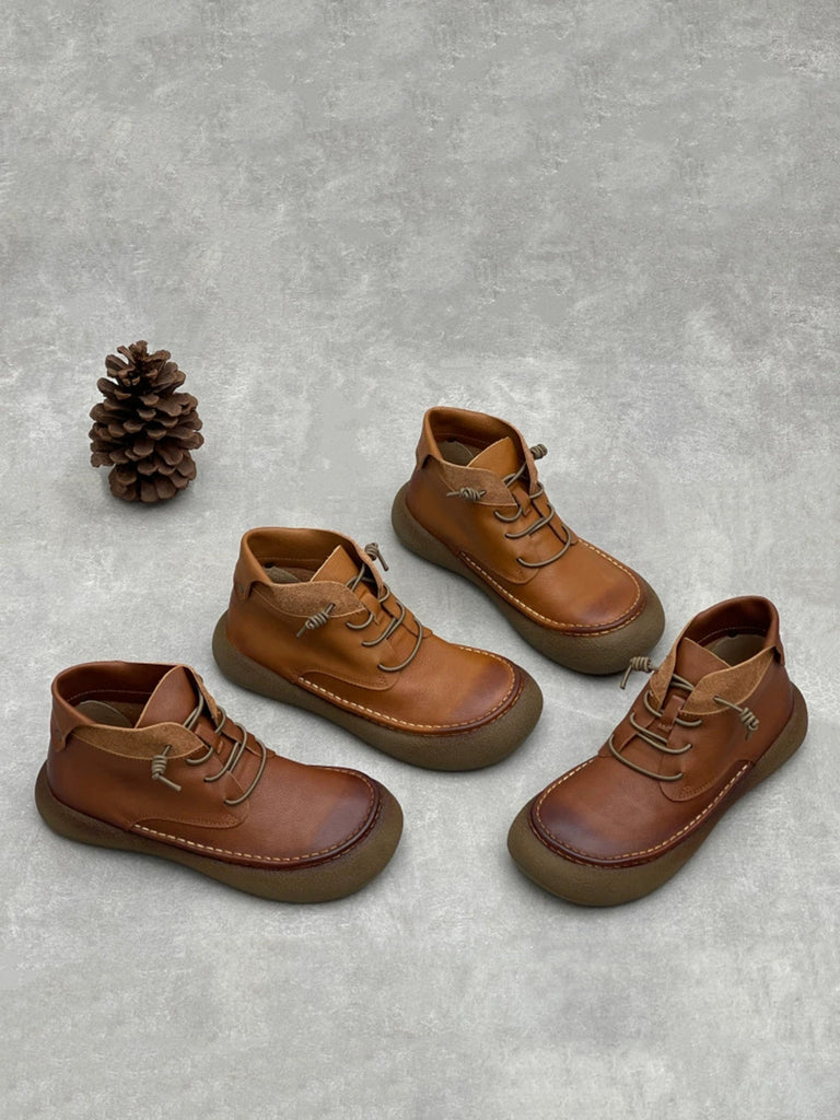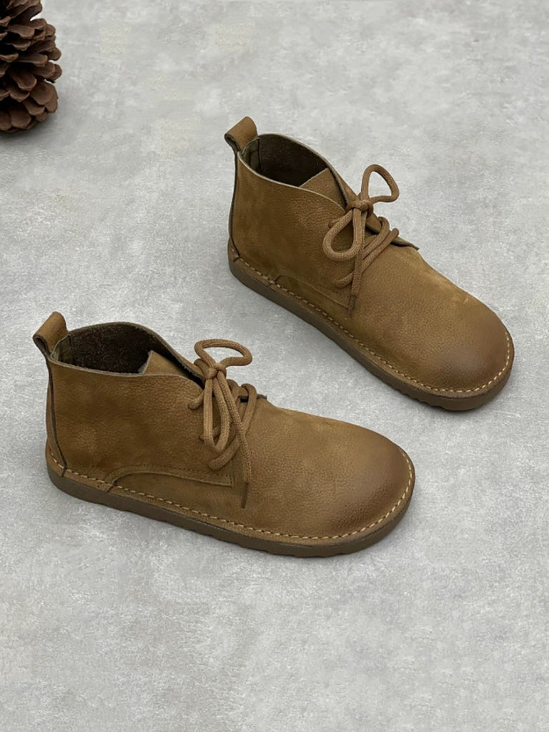 Women Vintage Genuine Leather Spliced Flat Ankle Boots