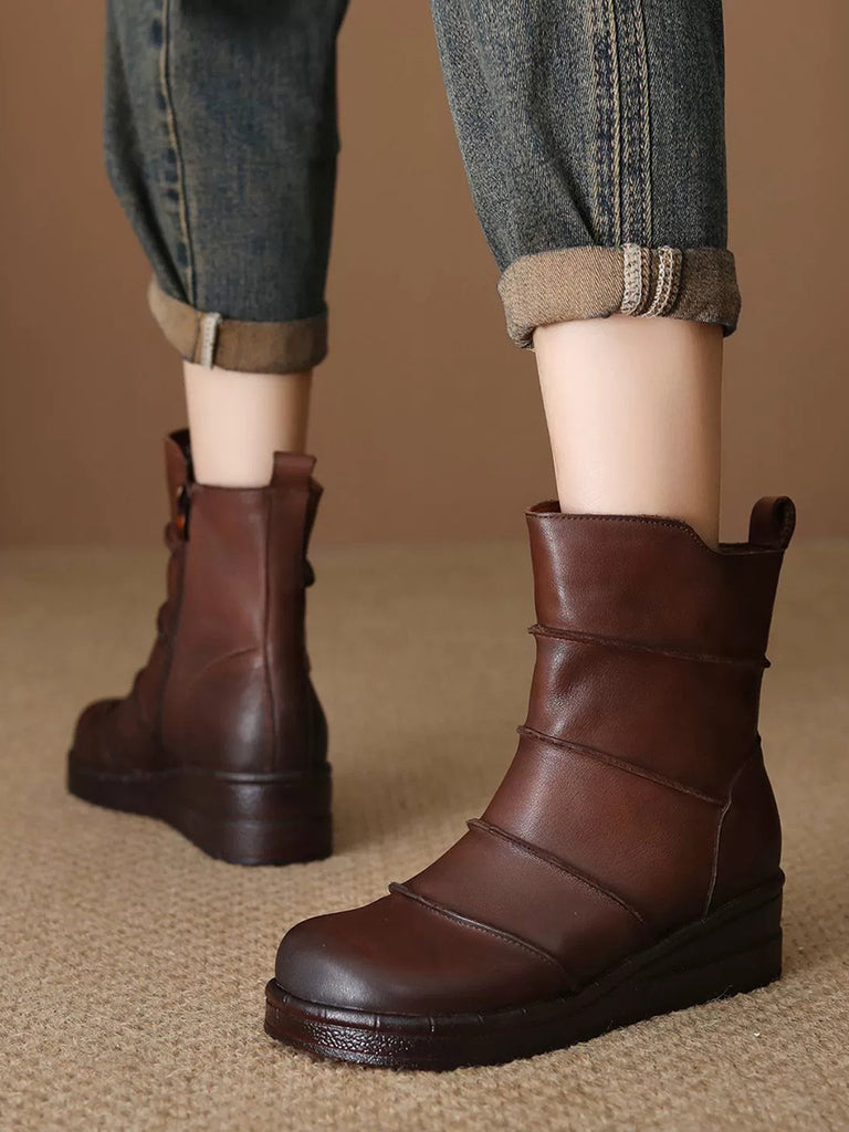 Women Vintage Genuine Leather Fleece-lined Ankle Boots