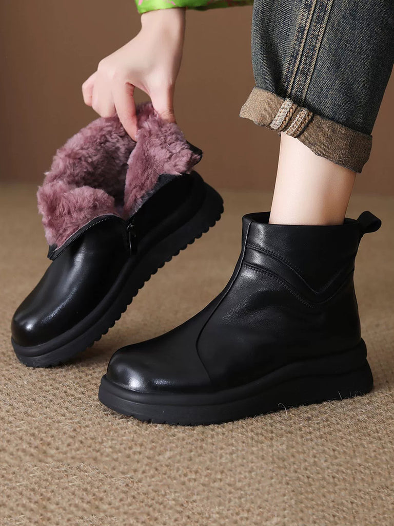 Women Winter Casual Genuine Leather Fleece-lined Boots