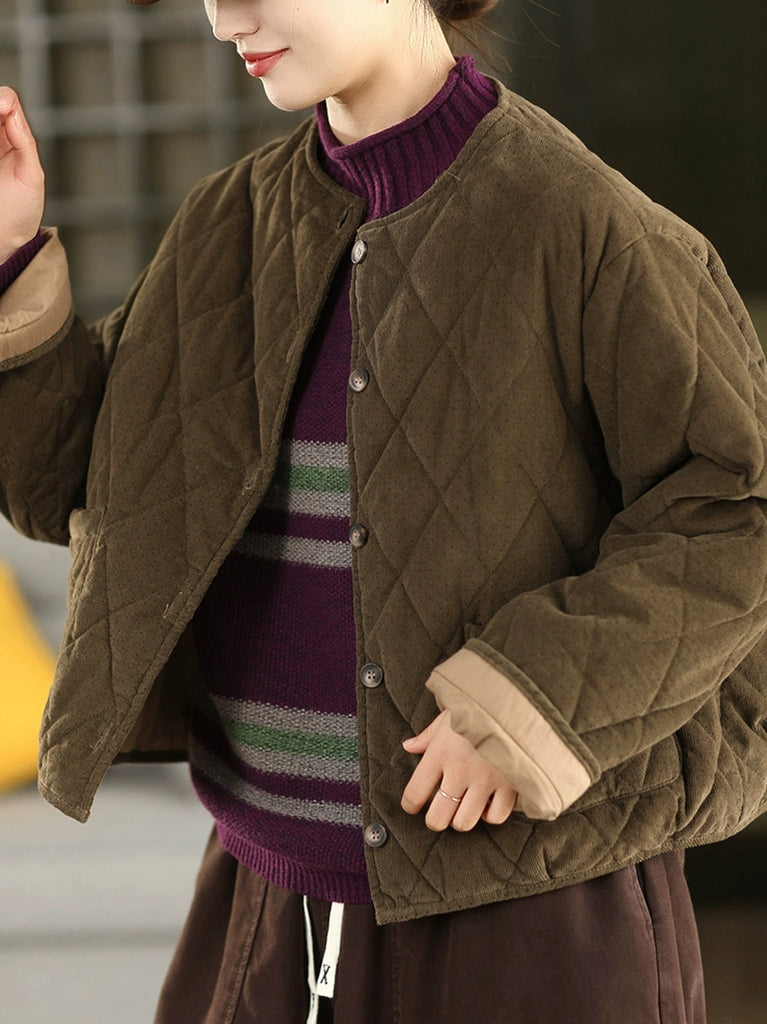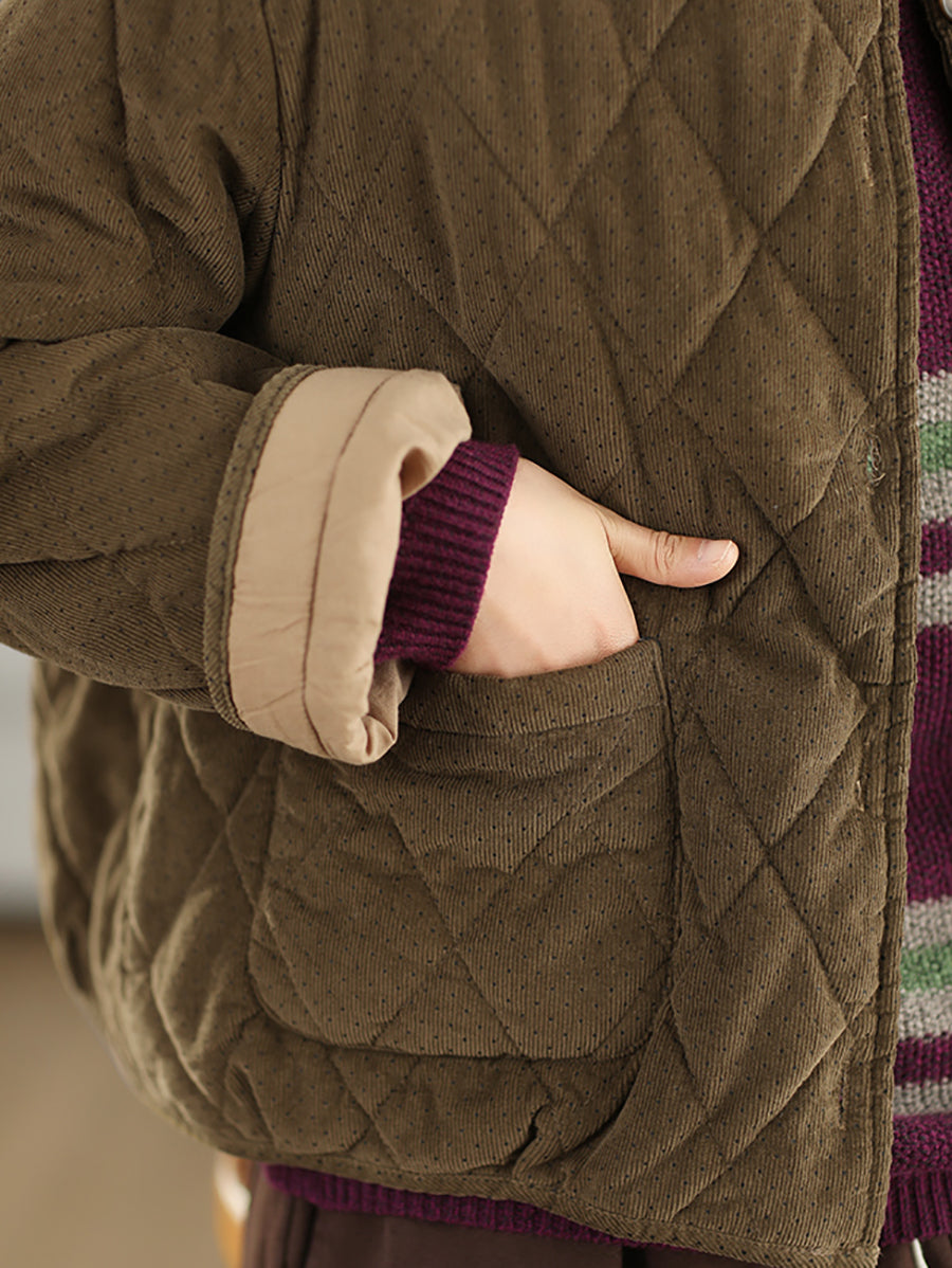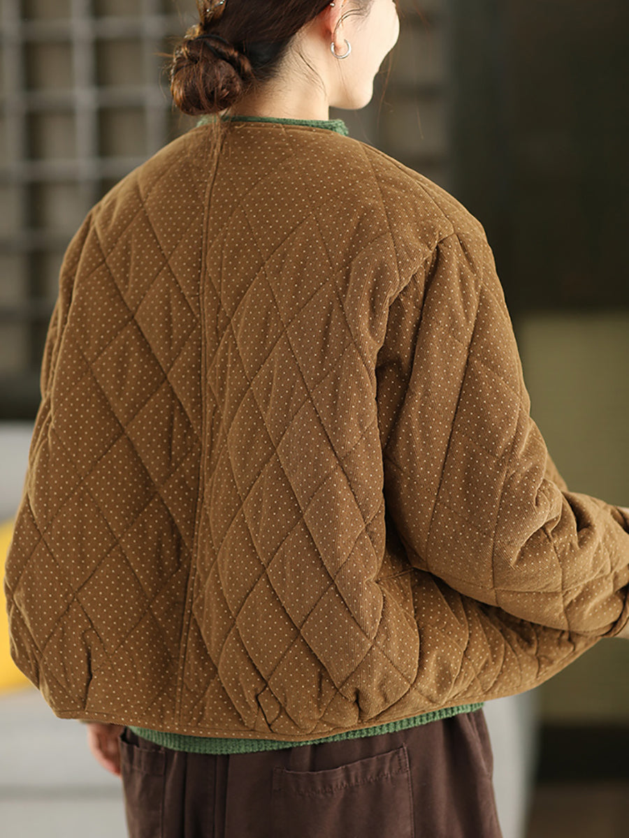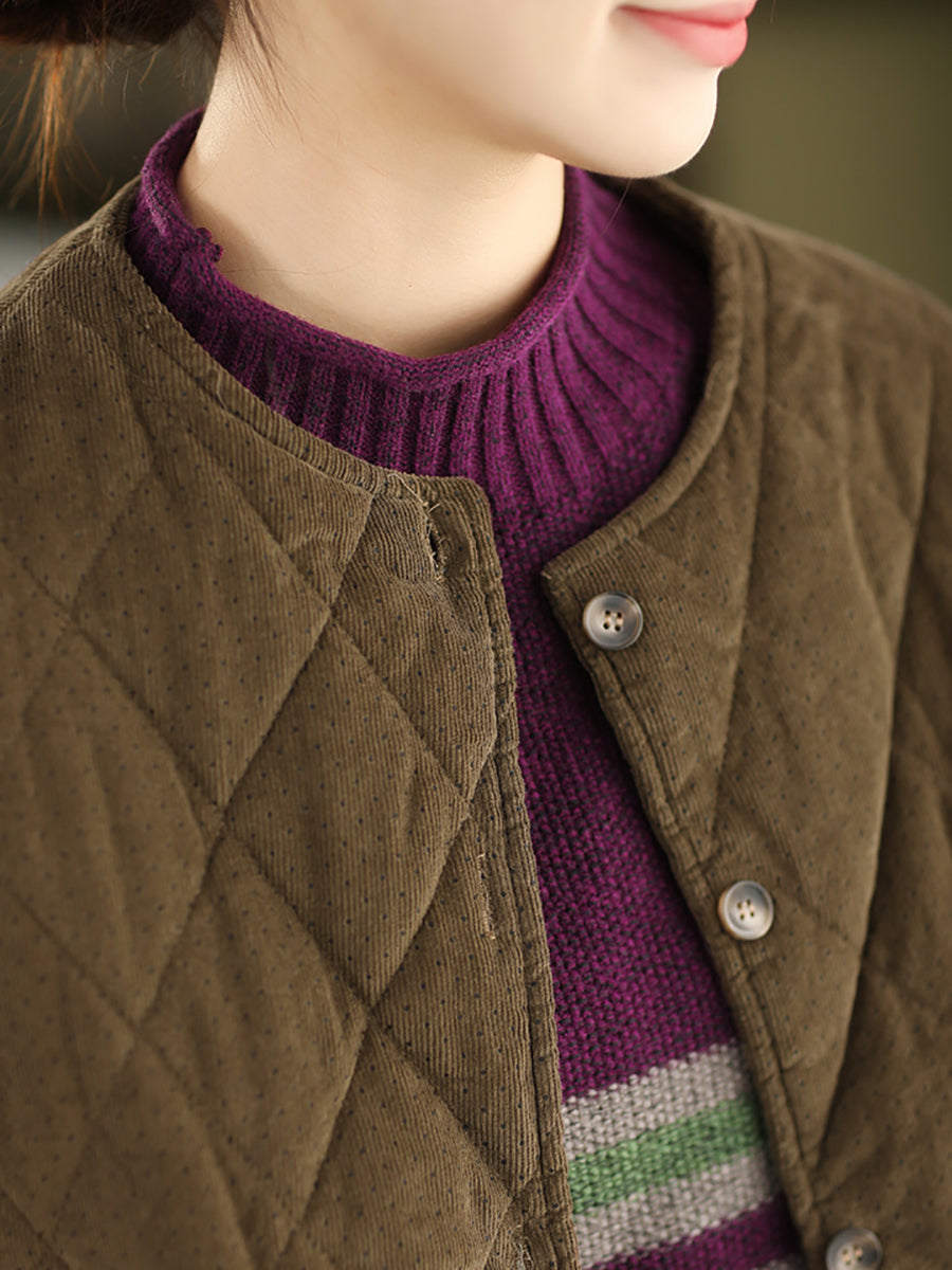 Women Winter Retro Dot O-Neck Corduroy Padded Jacket