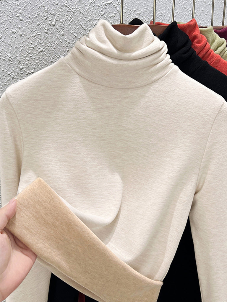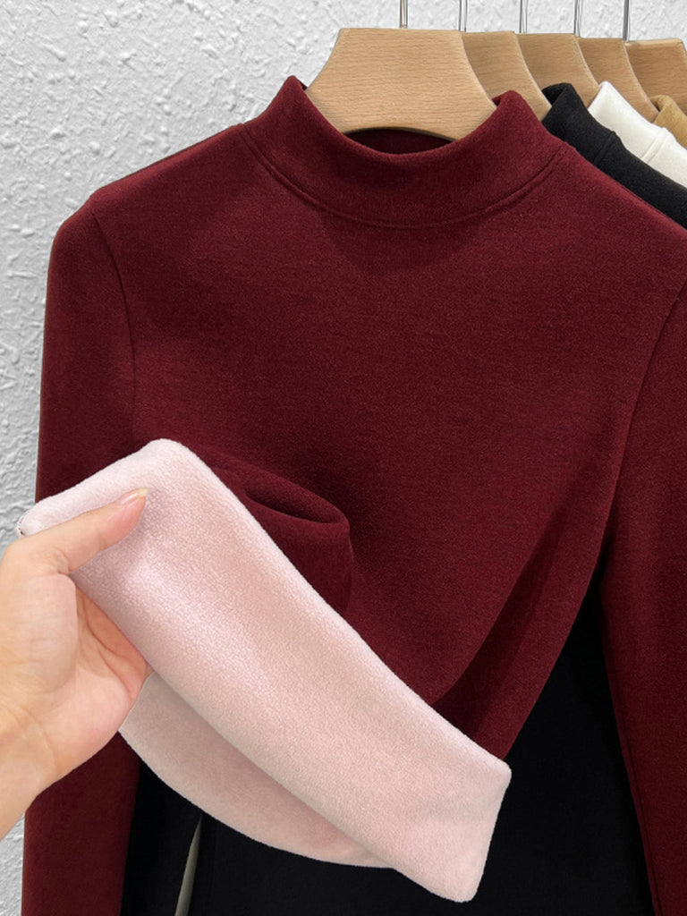 Women Autumn Casual Fleece-lined Half-Turtleneck Base Blouse